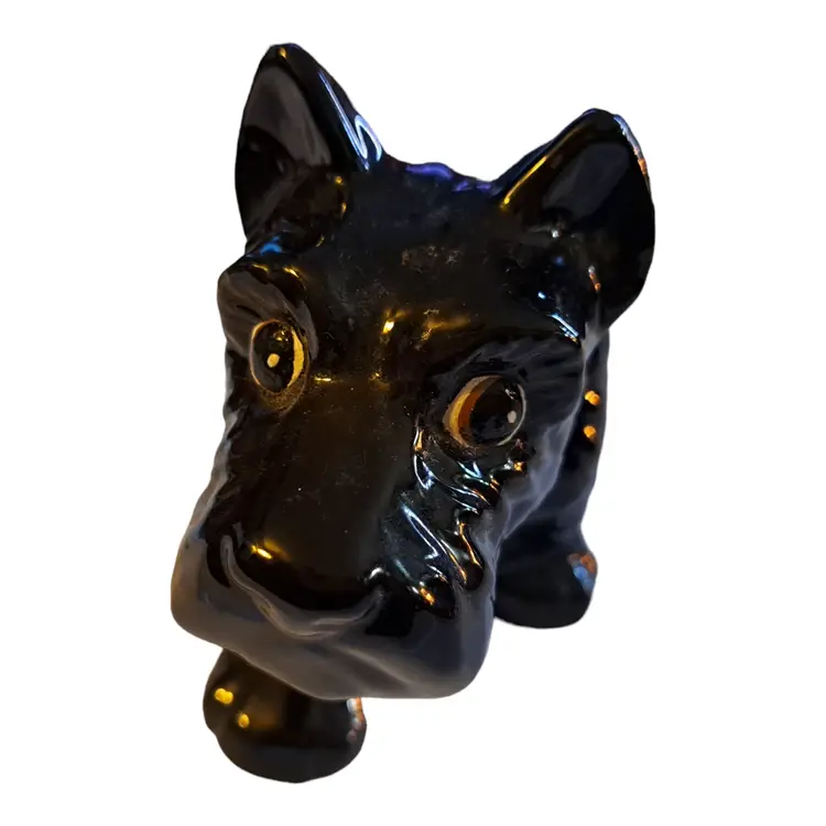 Black Scottish terrier with golden eyes. Statuette 9" nose to tail 4.5" tall No chips or cracks