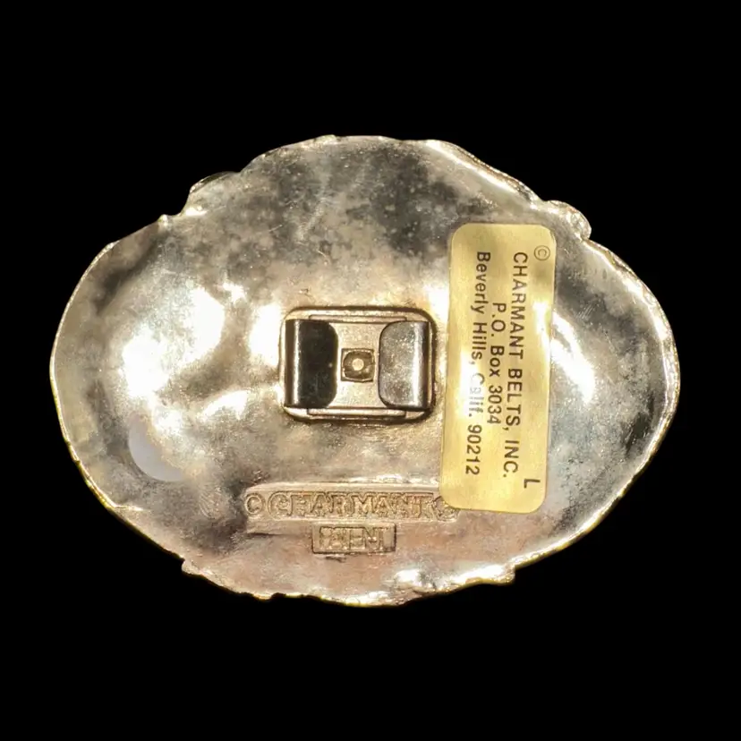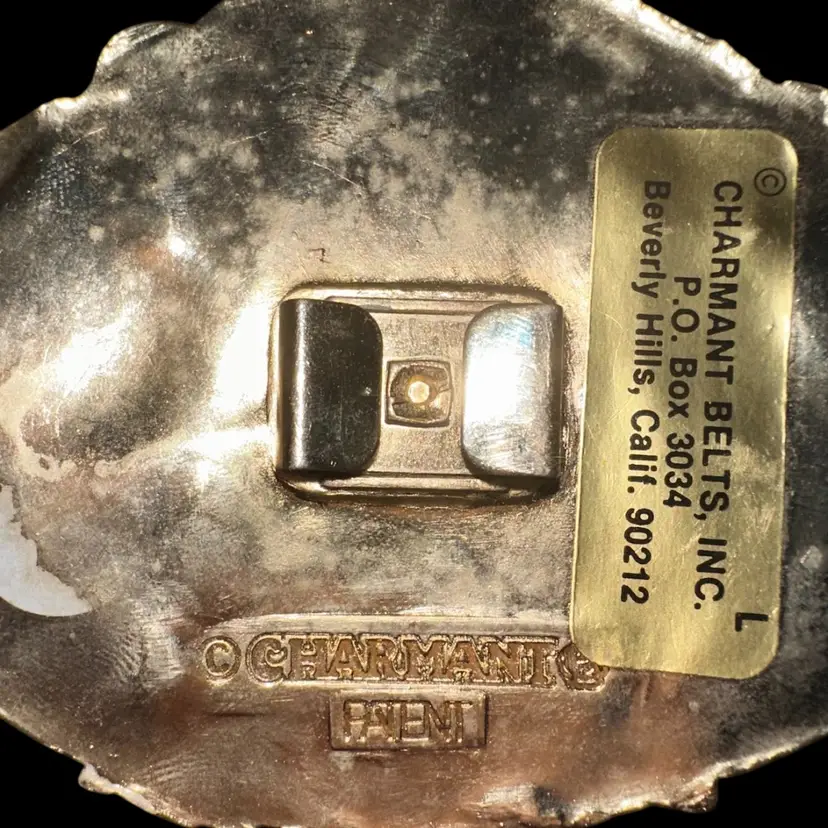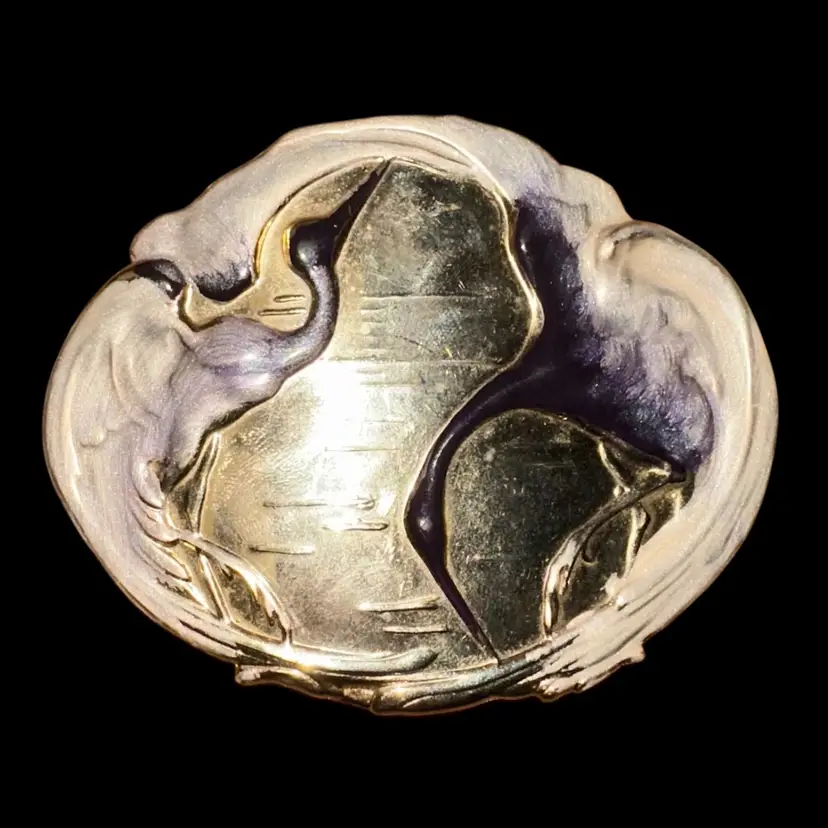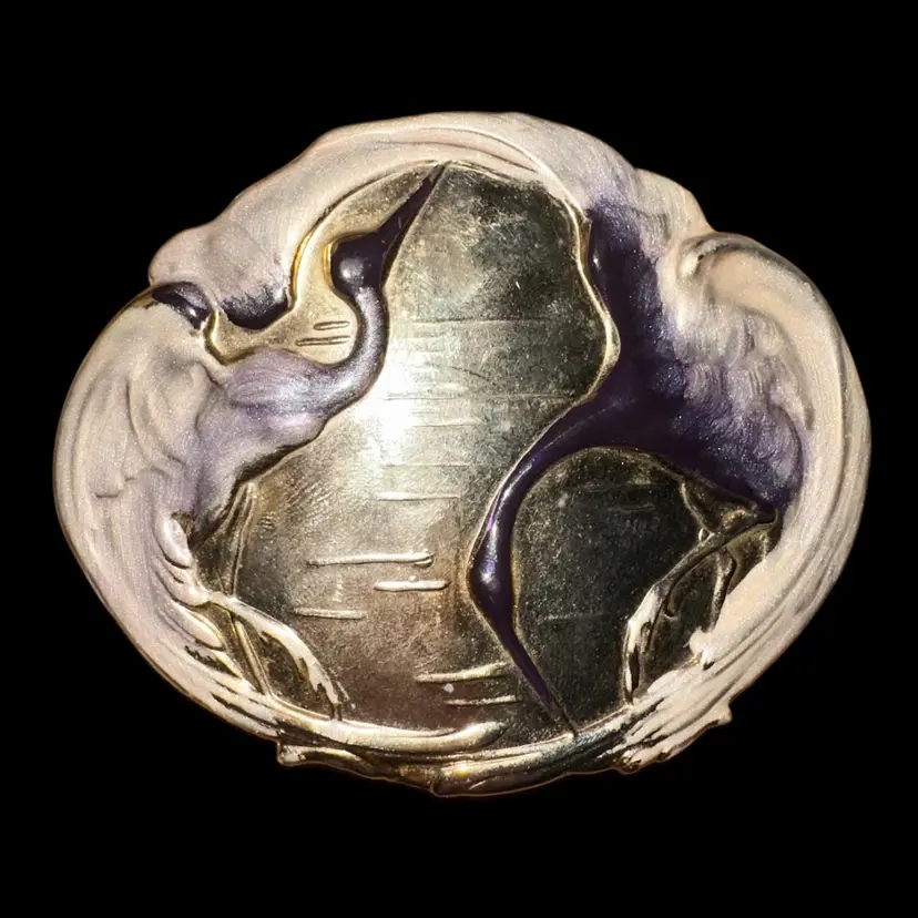 VTG Charmant Belts Belt Buckle Gold Tone and Lavender Enamel Cranes 3 3/4” x almost 3”