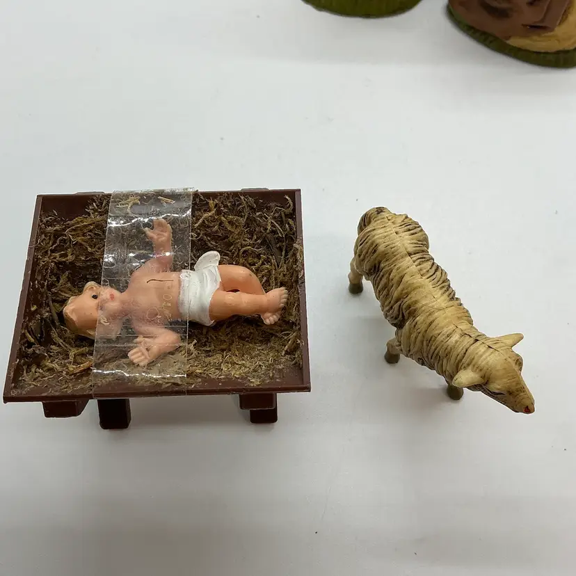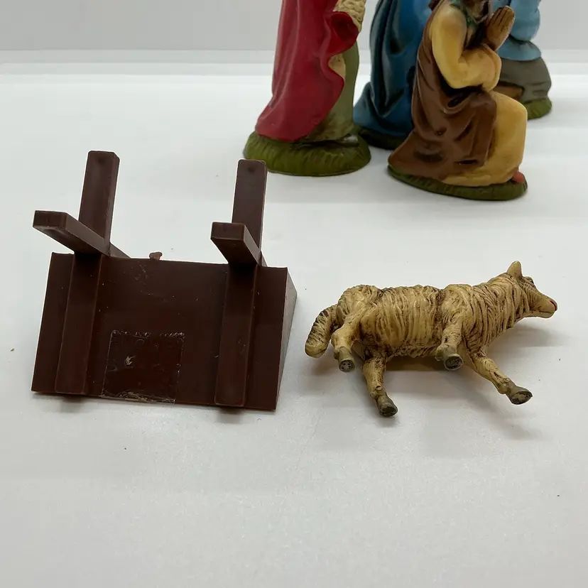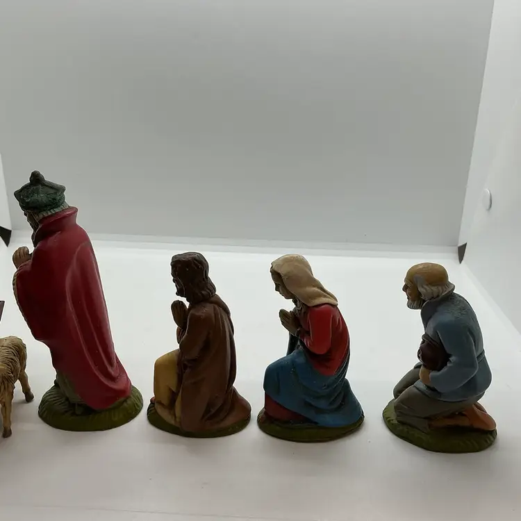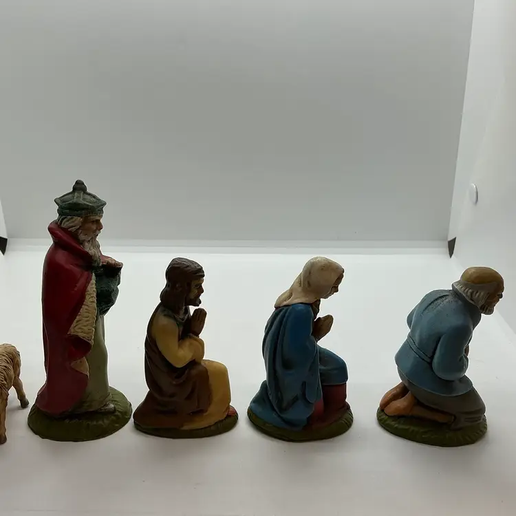 This vintage Nativity set from Bavarian Forest, West Germany features hand-painted figurines depicting the Nativity scene. Made of plastic, this set includes 7 items, with the central figure being Jesus. Perfect for collectors or those looking to add a unique touch to their Christmas decor, this religious-themed set is a charming representation of the holiday season. No box.
