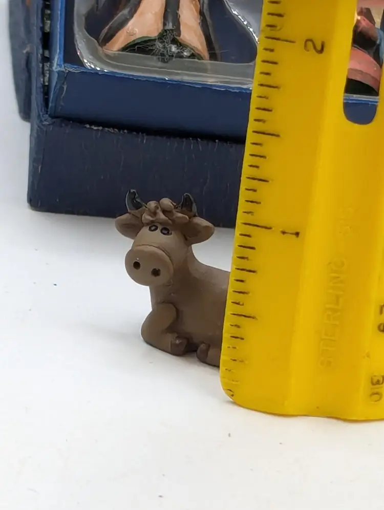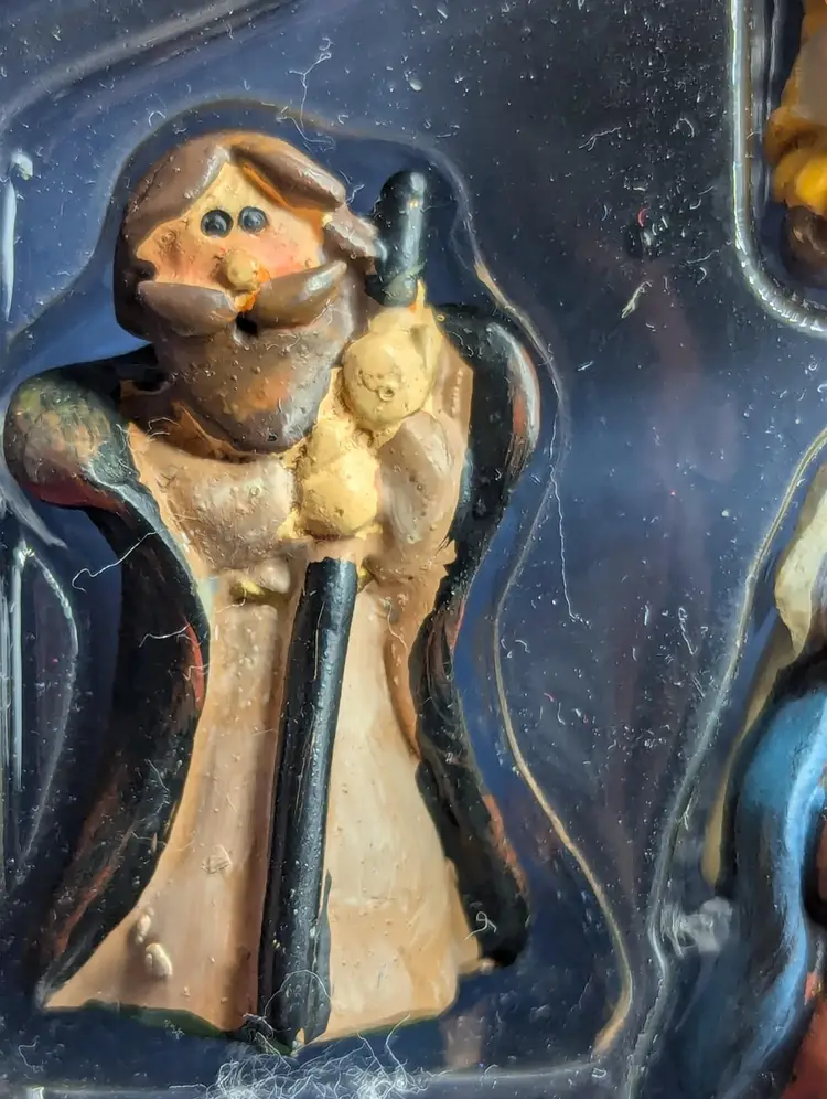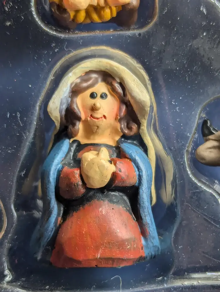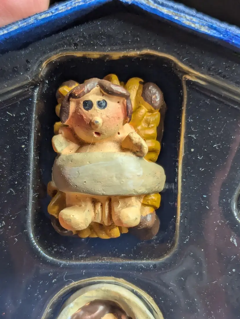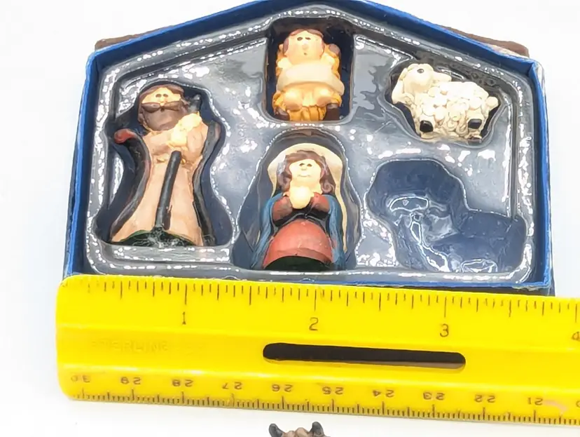 Vintage Christmas Nativity Scene 5 Piece Set Resin Figurines Felt Applique Box