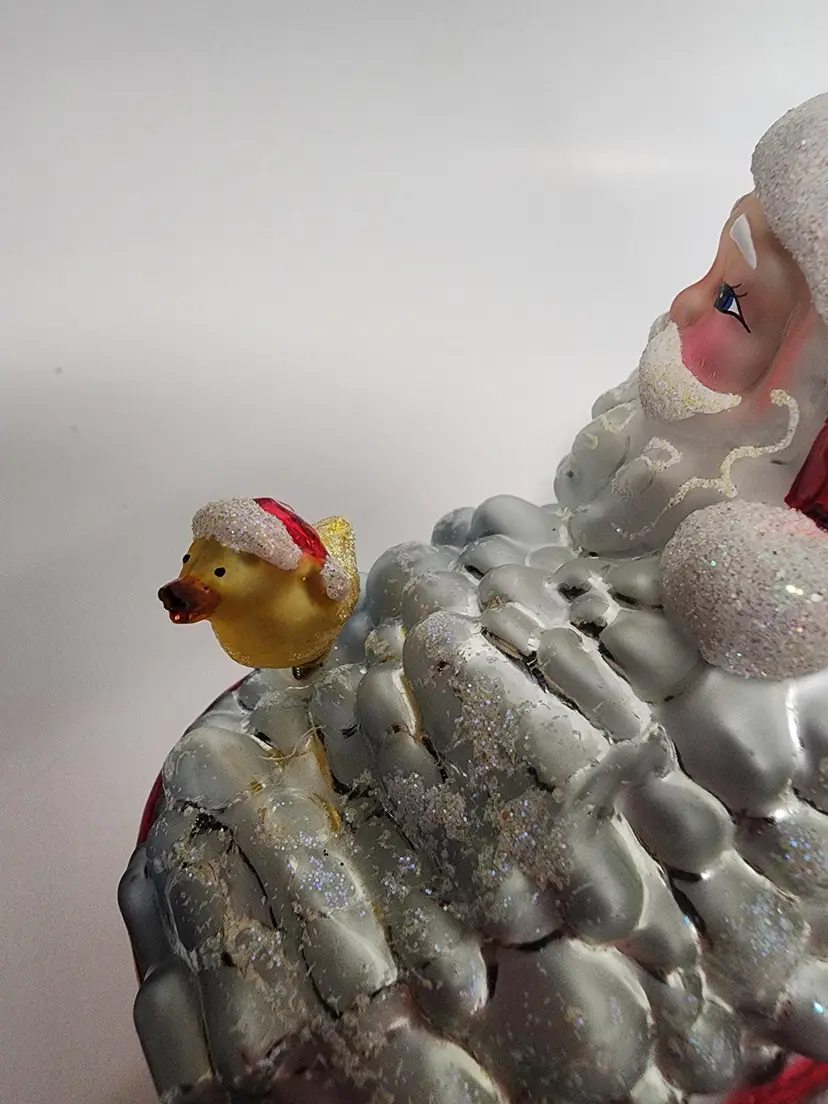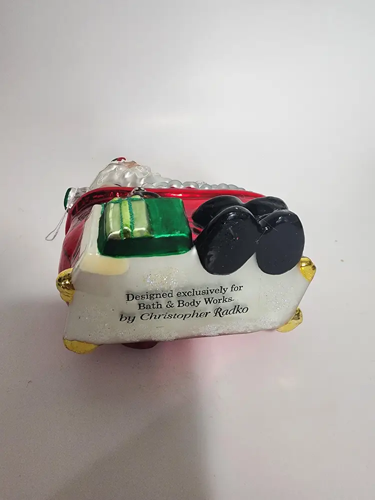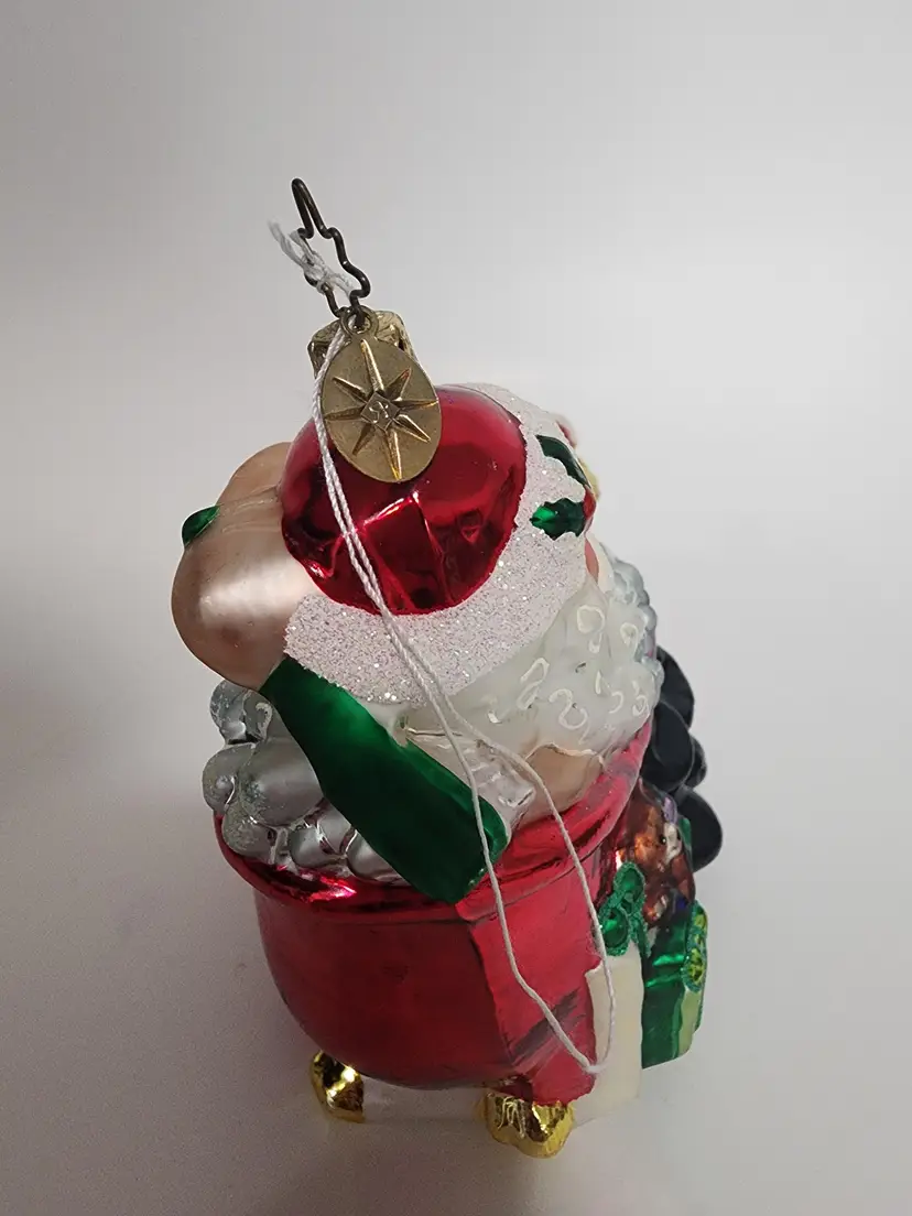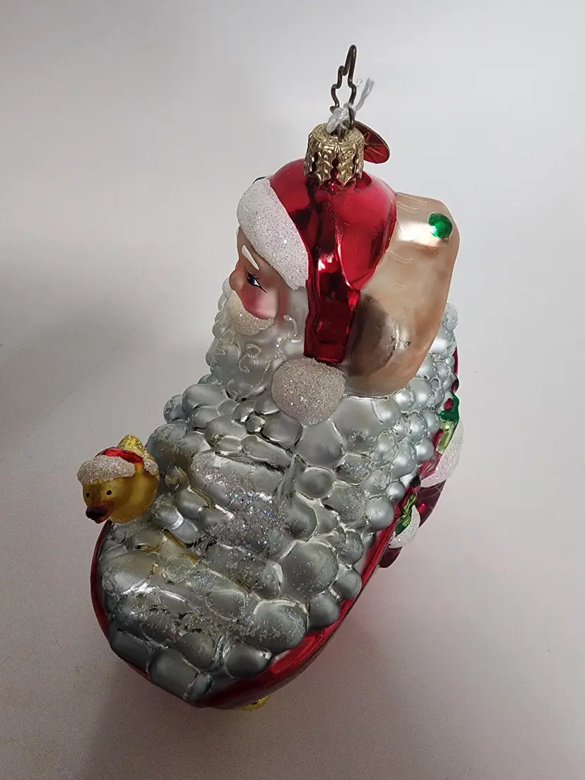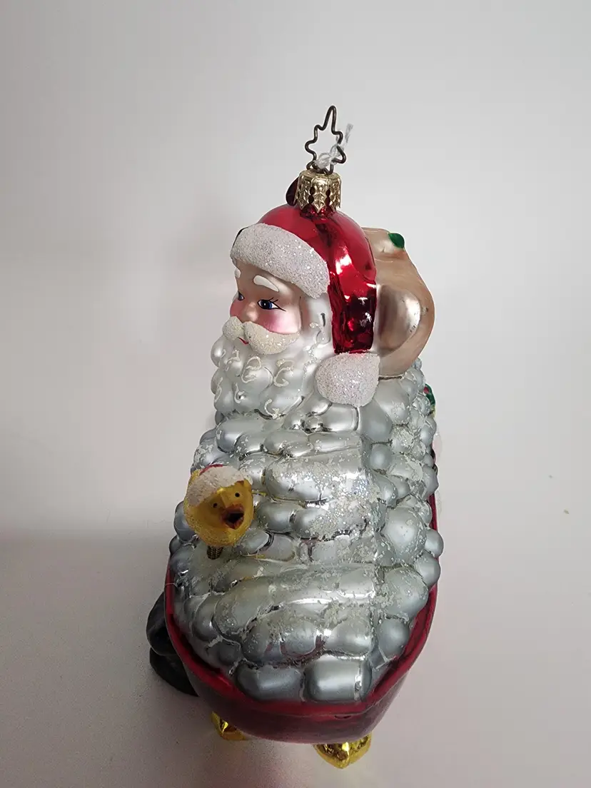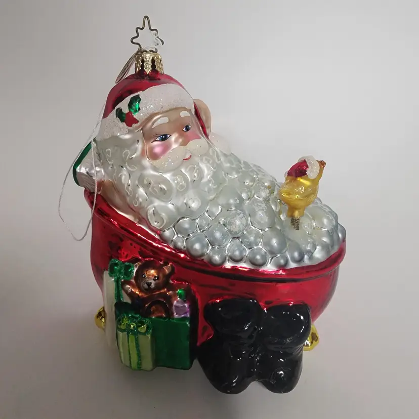 This is a limited edition 1999 Christmas glass ornament by Christopher Radko from Bath and Body Works. "Twas the Night After Christmas" features Santa relaxing in a bubble bath with his ducky.