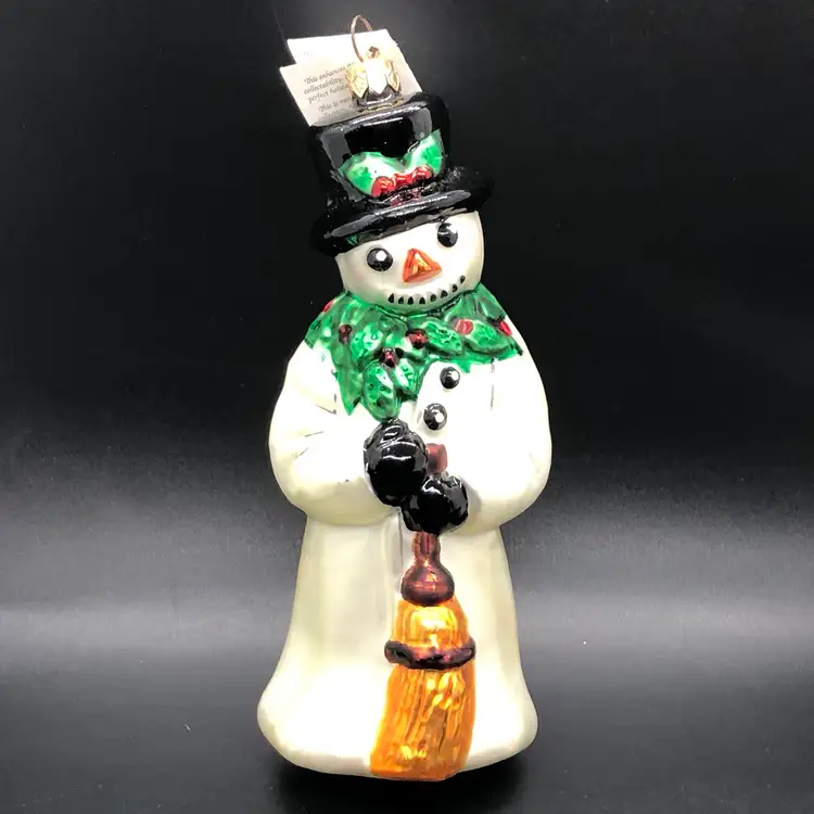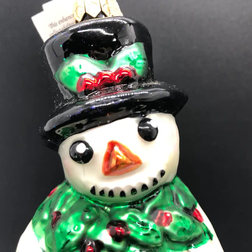 This vintage Christopher Radko Christmas ornament features a hand-blown glass snowman design with a pumpkin pattern and Santa Claus character. Manufactured in 1996, this multicolored ornament comes in its original box and is part of the Nickcicle collection. With a Christmas theme and artist-designed details, this original ornament is a delightful addition to any holiday décor, representing a piece of nostalgia from the 1990s. Made in Poland, this collectible item is sure to bring joy to any Christmas enthusiast's collection. The Original Box has some natural wear and the Christmas ornament is in great condition. Please check photos. Thank you 😊