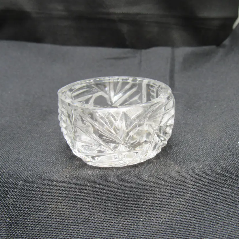Vtg Clear Pressed Zipper & Pinwheel Pattern Glass Open Salt Cellar