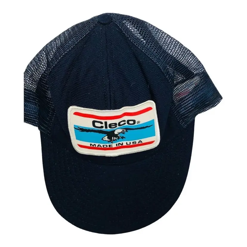 Discover the Cleco Trucker Hat, the perfect blend of style and functionality. This one-size-fits-all black cap is designed for both men and women, exuding timeless fashion. Its foam front panel and mesh back offer comfort and breathability. Made in the USA, this hat features a unique vintage charm ideal for casual outings. The pre-owned condition adds character, with no fraying, rips, or holes. It has been freshly washed, although it may display signs of its previous life like wrinkles, marks, or a faint scent of its barn origins, enhancing its authentic, distressed appeal. View the photos for a closer look at its unique story. Theme: Vintage, Casual.
