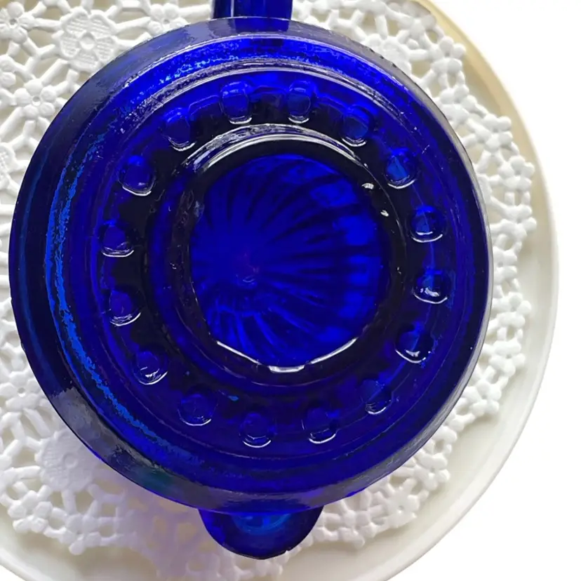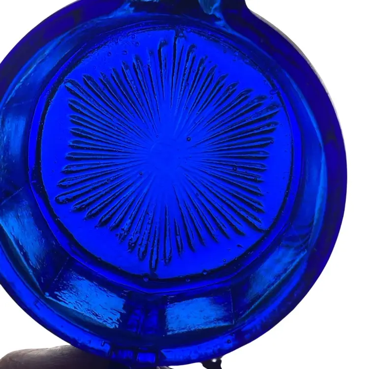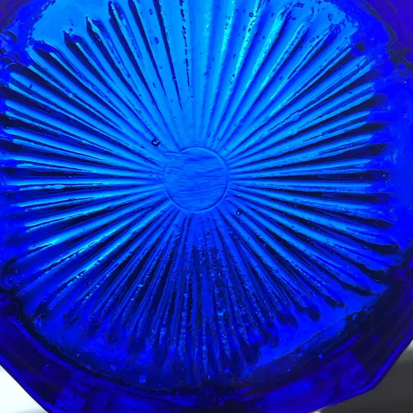 No markings . The inside has rough bubbles I suppose ? Good vintage condition.