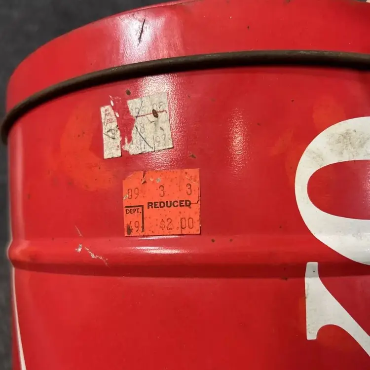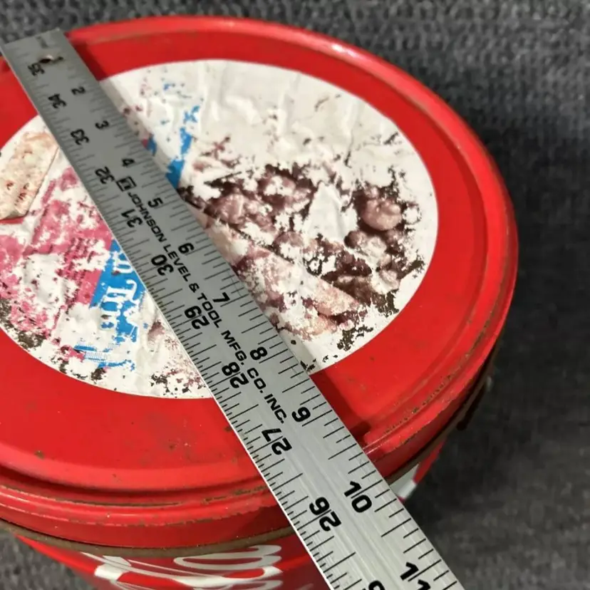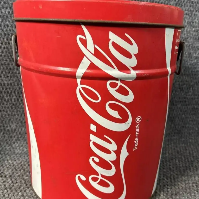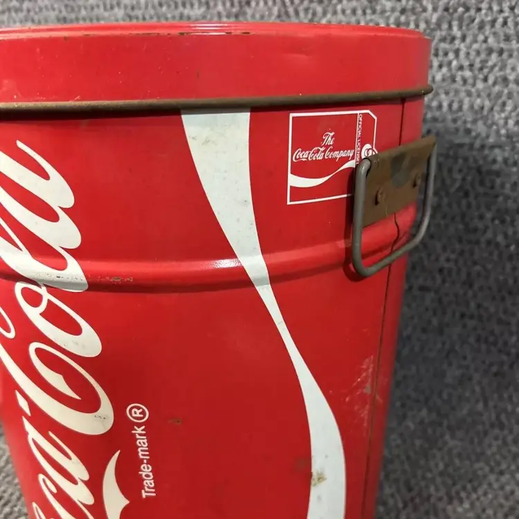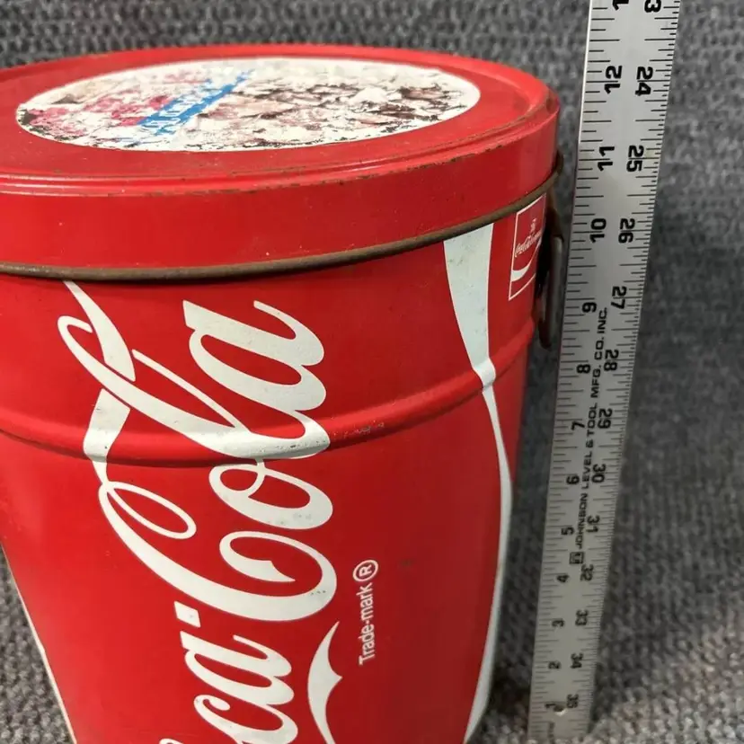 Vintage coke popcorn tin with some age wear as shown