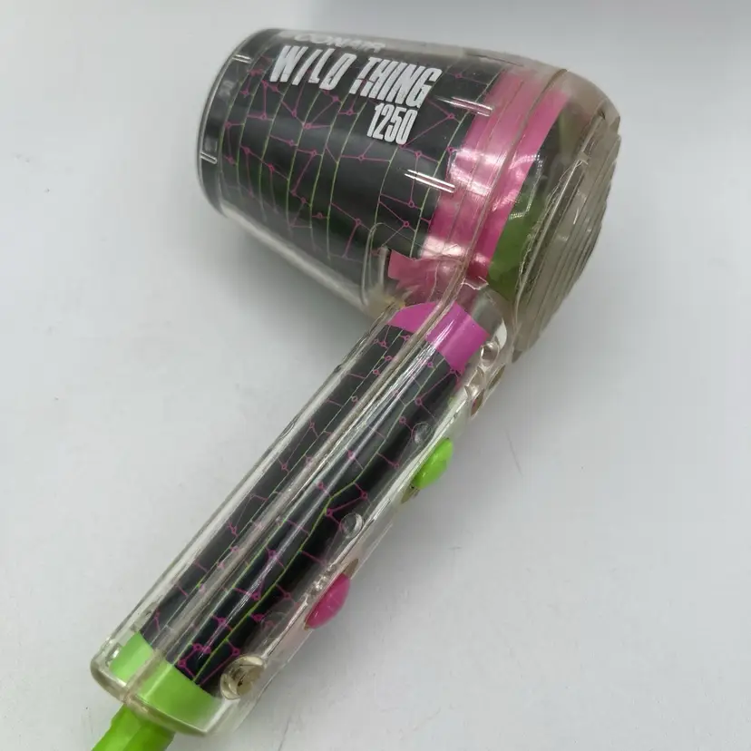 Vtg Conair Wild Thing Travel Hair Dryer Clear 1250 Watts Neon Pink Green 1990s