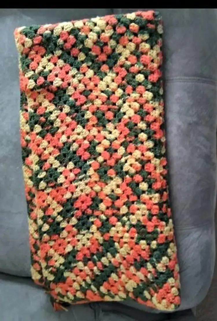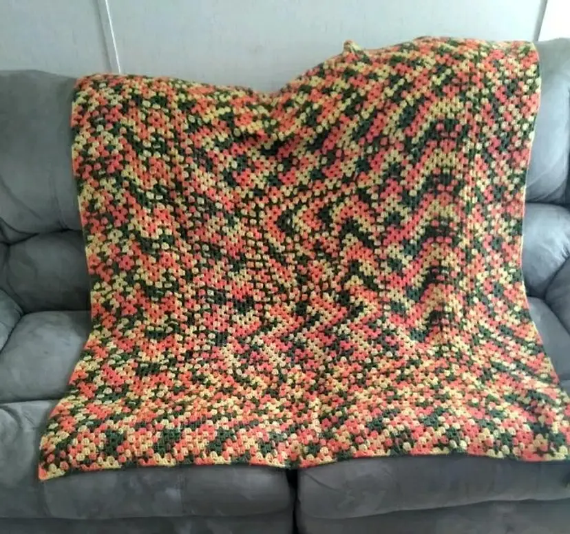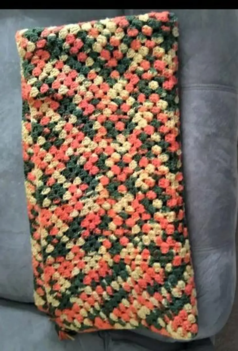Medium weight yarn, unique design, no snags, Afghan had tassel's on the four corners, one corner has a tassels missing.