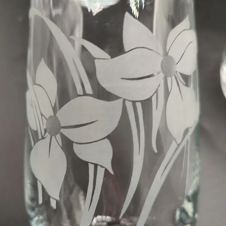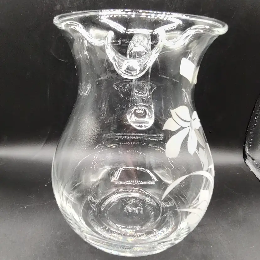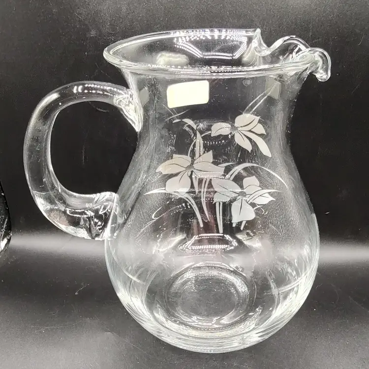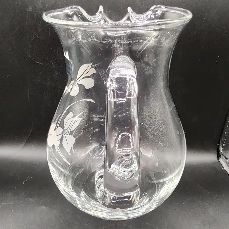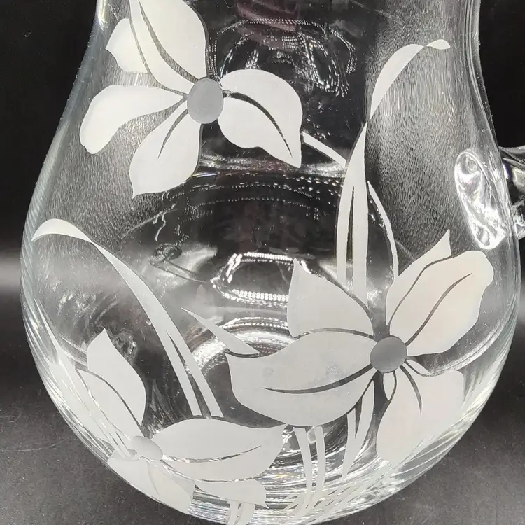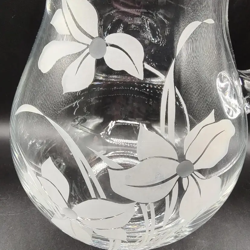Vintage Crystal Clear Industries "Iris Frost"Hand Cut Crystal Seven piece pitcher set in original box looks to be unused. In good condition with no chips or cracks. Pitcher height 8.5" x diameter 6.5"/ Glasses height 8" x diameter 3". Made in Turkyie