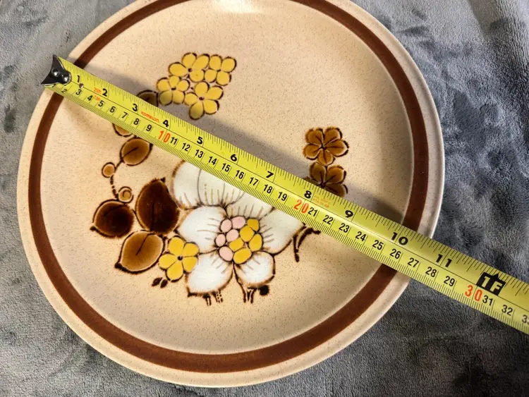 This Vintage Cupboard Craft Brown Sugar Stoneware Dinner Plate from International China Co. Japan is a round, 10.5" plate with a vintage flower design in mid-century modern style. Made of stoneware in a semi-matte brown finish, it is oven and dishwasher safe. Produced in the late 20th century using pottery techniques, this original International China Company piece is perfect for all occasions, adding a touch of retro charm to any table setting. Excellent condition. No chips, cracks, or crazing.