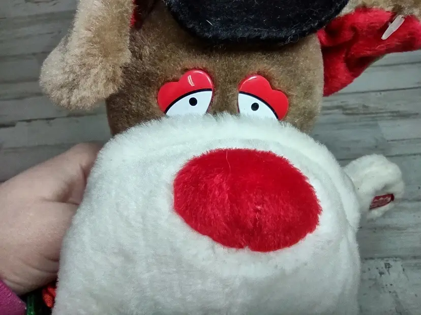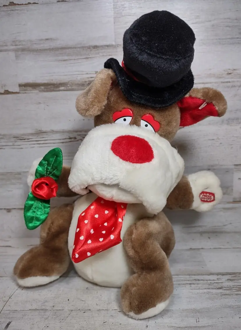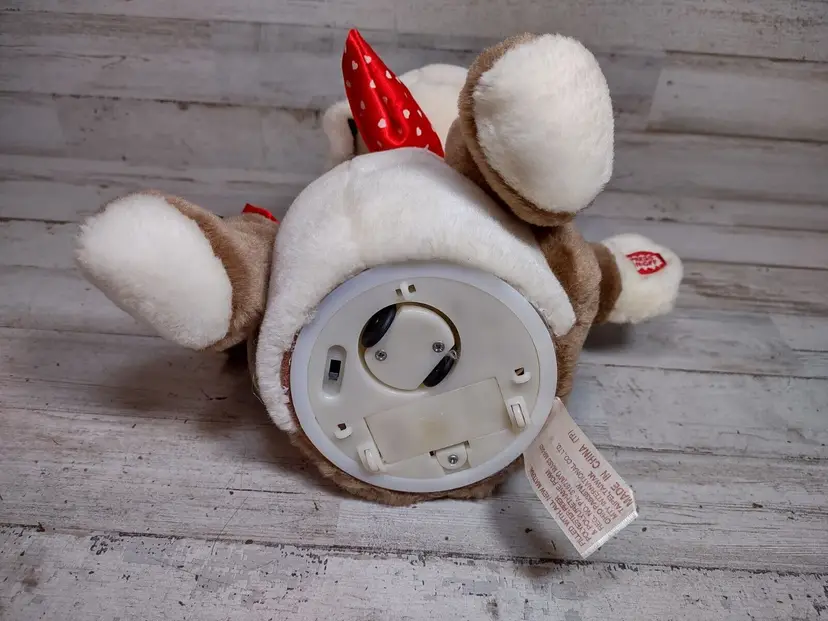 Used vintage condition with wear. Toy was tested with batteries and does not work; sold as is for parts, repair, or decoration only. Plush measures approximately 11" tall. See photos for more detail.