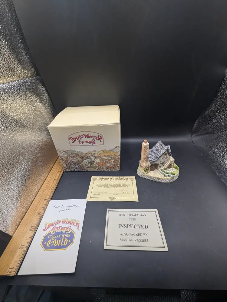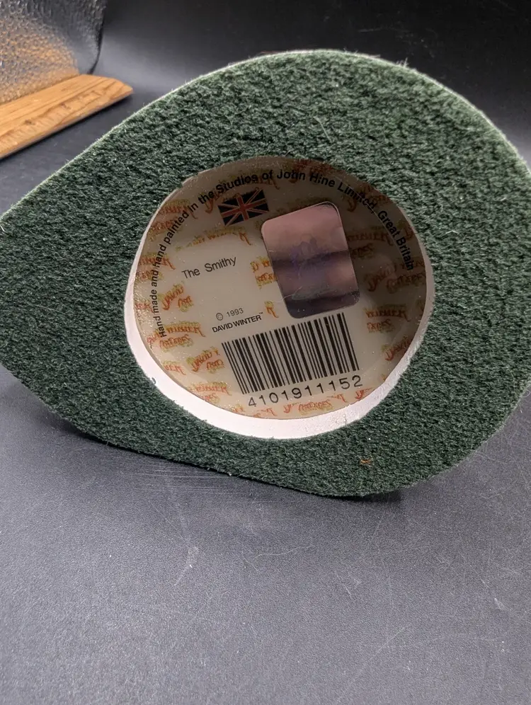 The "Smithy" is a popular, detailed ceramic collectible from the David Winter Cottages series, released by John Hine Studios in 1993, known for its intricate English village architecture, hand-painted finish, and inclusion of a Certificate of Authenticity (COA) and has its original box, adding charm and history to miniature village displays. It is half price of the original ticketed price as seen by tag. Please see all pictures for condition and measurements.