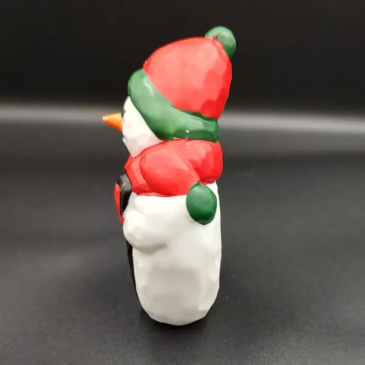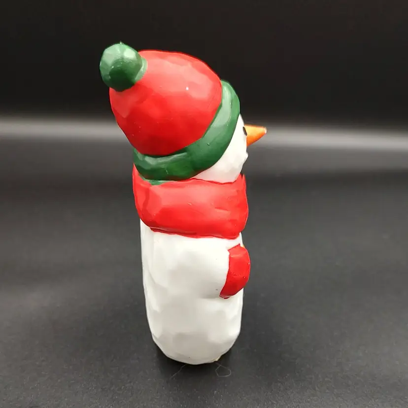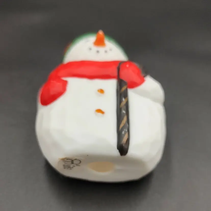 Vintage Department 56 Hand painted Ceramic Snowman Figurine/Ornament. Height 3.5" x width 1" x length 2.5". Made in Taiwan