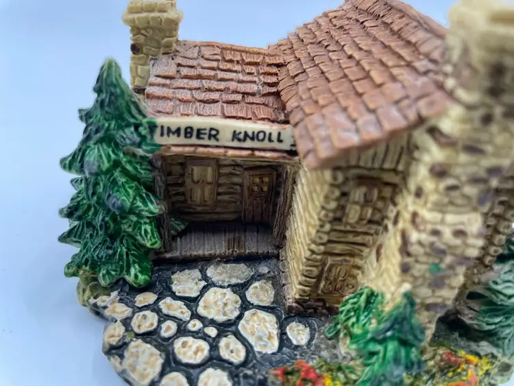 The VTG Dept 56 New England Miniatures Timber Knoll Log Cabin Christmas Village is a small, hand-painted ceramic and porcelain collectible from Department 56. This rustic log cabin, part of the New England Miniatures collection, features a multicolor matte finish and measures 3.5" in length, 3" in height, and 3.25" in width. Perfect for any tabletop display, this retired village piece captures the charm of Christmas with its festive design and classic log cabin shape. Ideal for adults and collectors, this original 1987 piece adds a touch of nostalgia to any holiday decor.