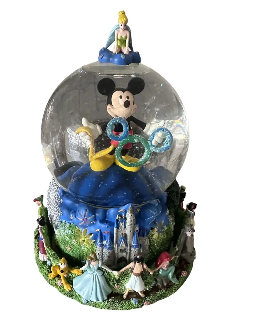This beautiful snow globe is in excellent condition. No chips, cracks or breaks. Lights, music and rotating disney characters all working as they should. There does not seem to be any broken figures on this snow globe. Please see the photographs for additional Ornament and box condition. Thanks for stopping by!