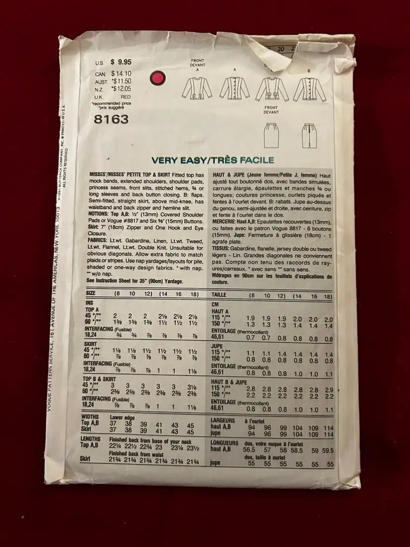 Vtg Very Easy Very Vogue Pattern 8163 Petite Top & Skirt Uncut FF Please see photos. Let me know if you have any questions. Thank you for stopping by.