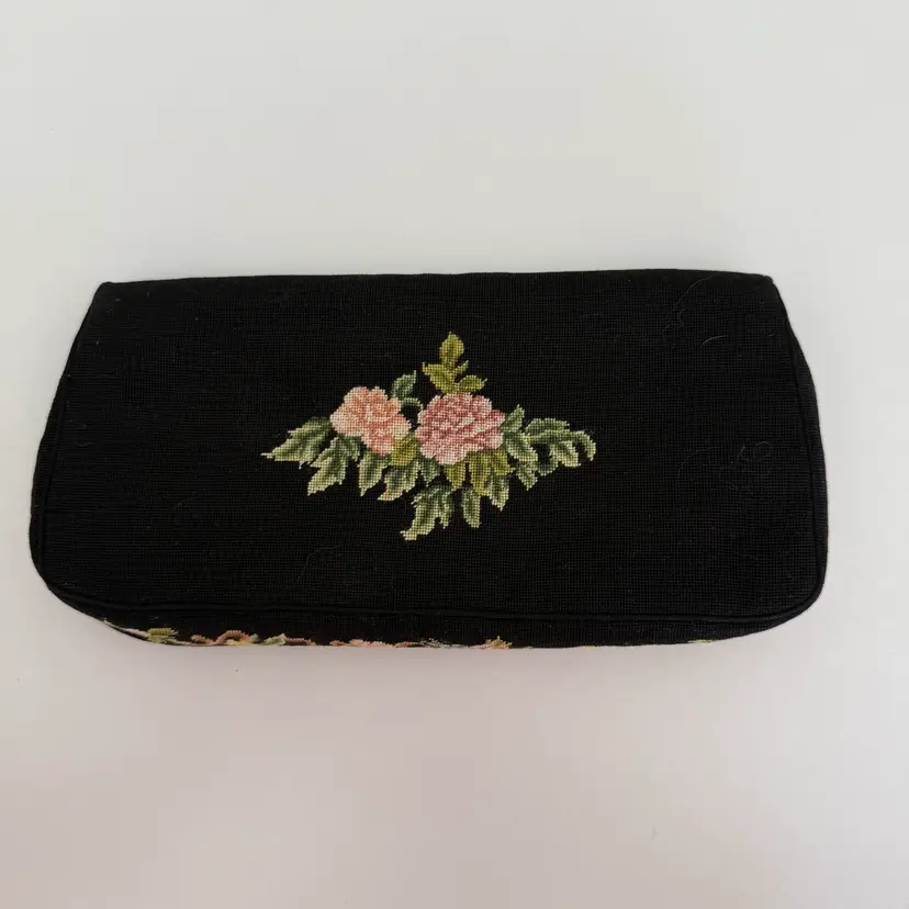 Vtg Embroidered Floral Needlepoint Clutch Purse Pre-owned