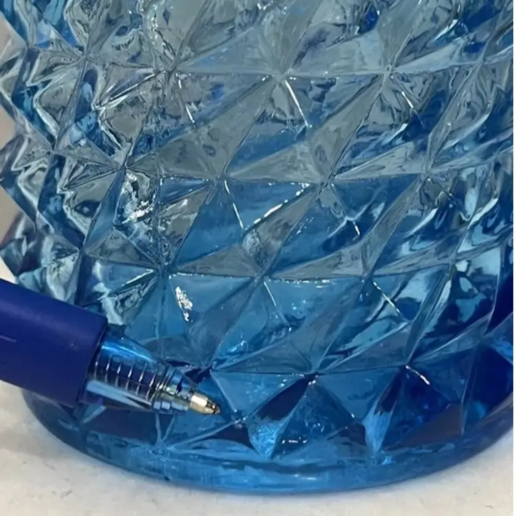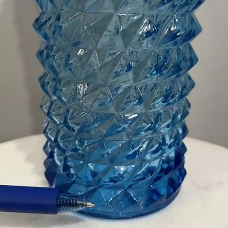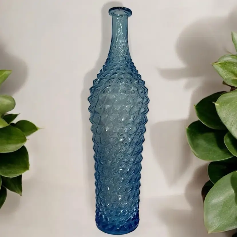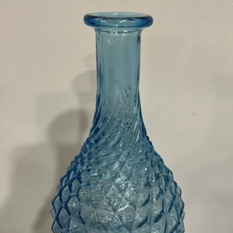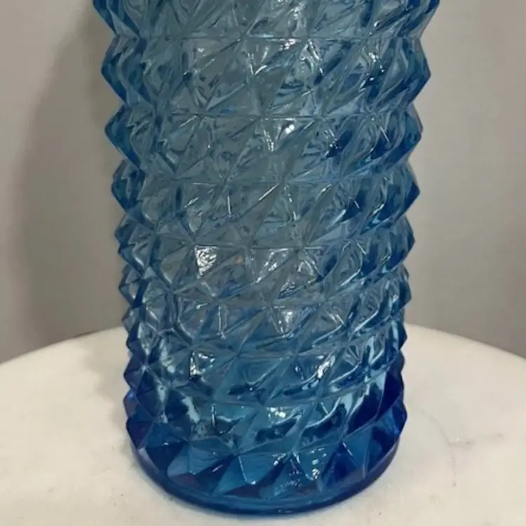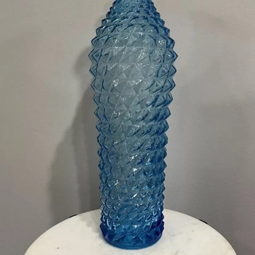 In decent condition for its age. There is one small flea bite found on one of the points as shown. Bottle has been cleaned, but there is one dark area that we’re unable to clean that’s on the inside of the bottle (see photos). Some bubbles within the glass from production. Measures approximately 16” tall and 4.5” wide. Message me with any questions.