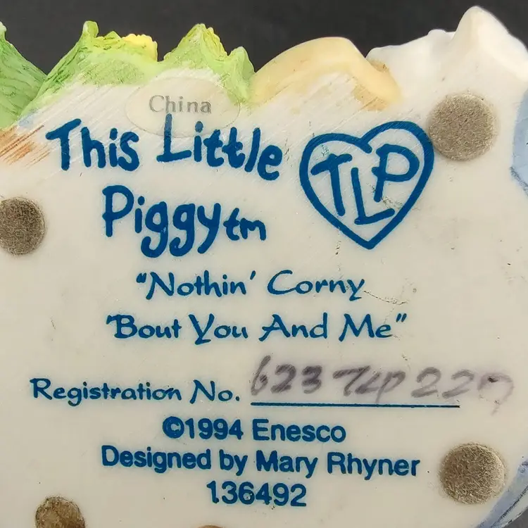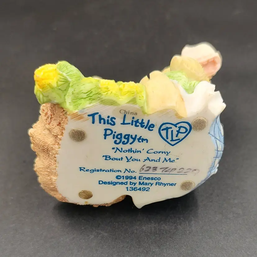 Vtg 1994 Enesco This Little Piggy "Nothing Corny About You And Me"Figurine by Mary Rhyner. Height 3" x width 2" x length 2.5". Made in China