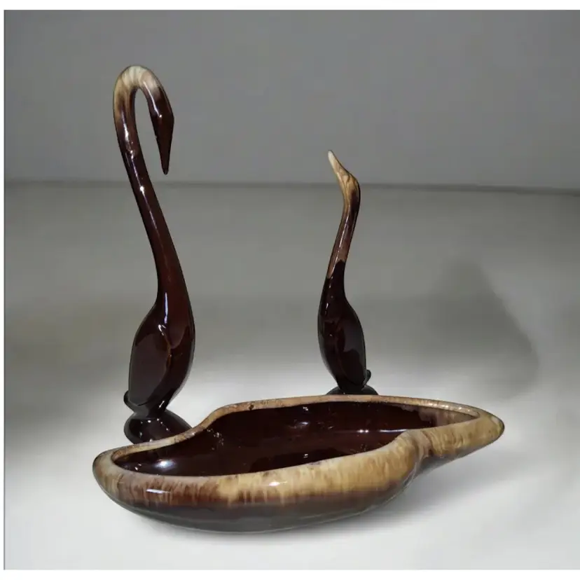 VTG EUC 3 Pc MCM Redware Art Set Brown Drip Glaze 2 Swans & Abstract Bowl Enesco. Excellent condition. No chips or cracks. Bowl measures approximately 9 inches long , large swan measures approximately 9 inches, small swan measures approximately 7 inches tall