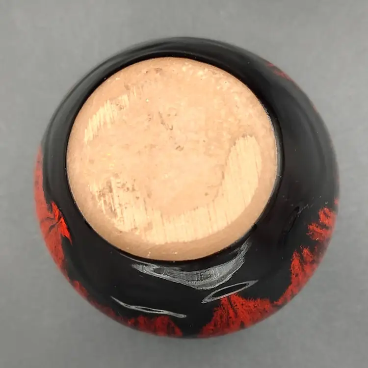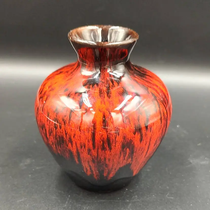 Vintage 1960 Evangeline Canuck Pottery Red Drip Glaze Vase. Height 4" x diameter 4". Made in Canada