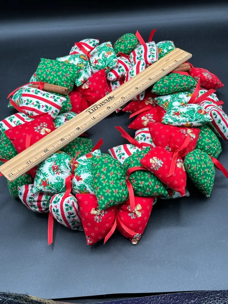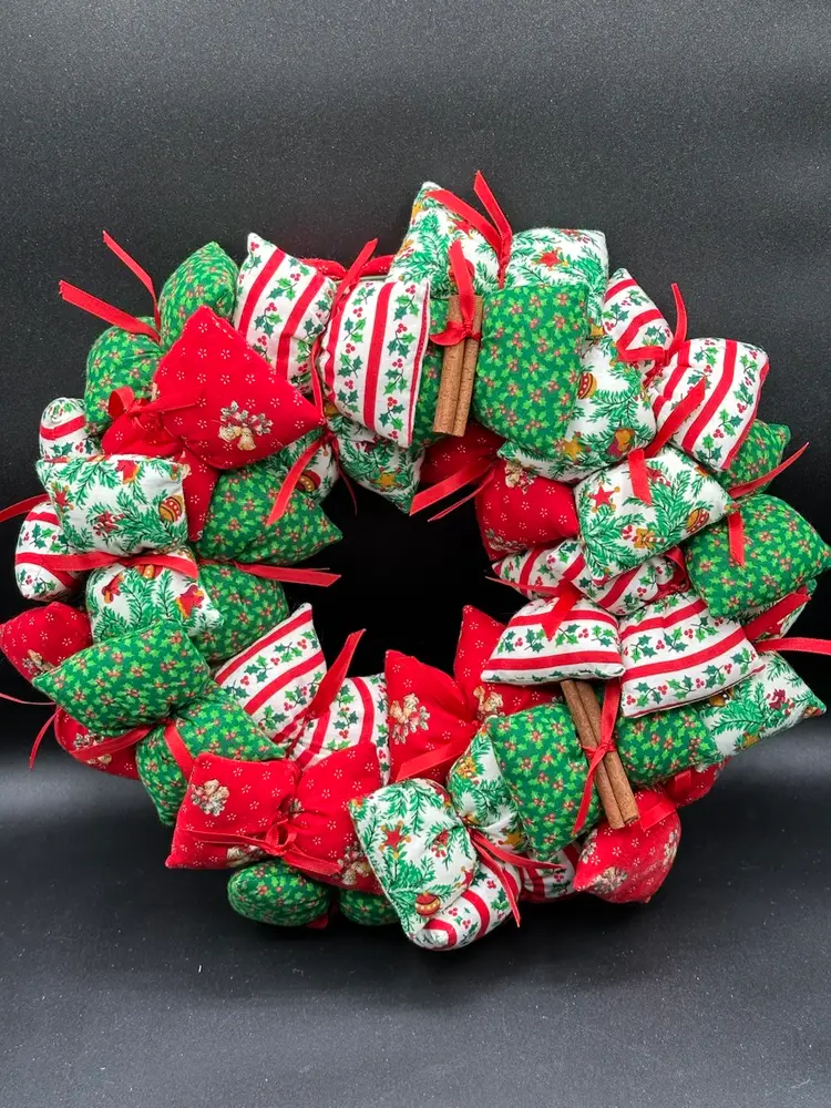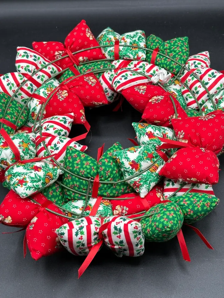 VTG Fabric WREATH Stuffed Handmade Quilt Christmas