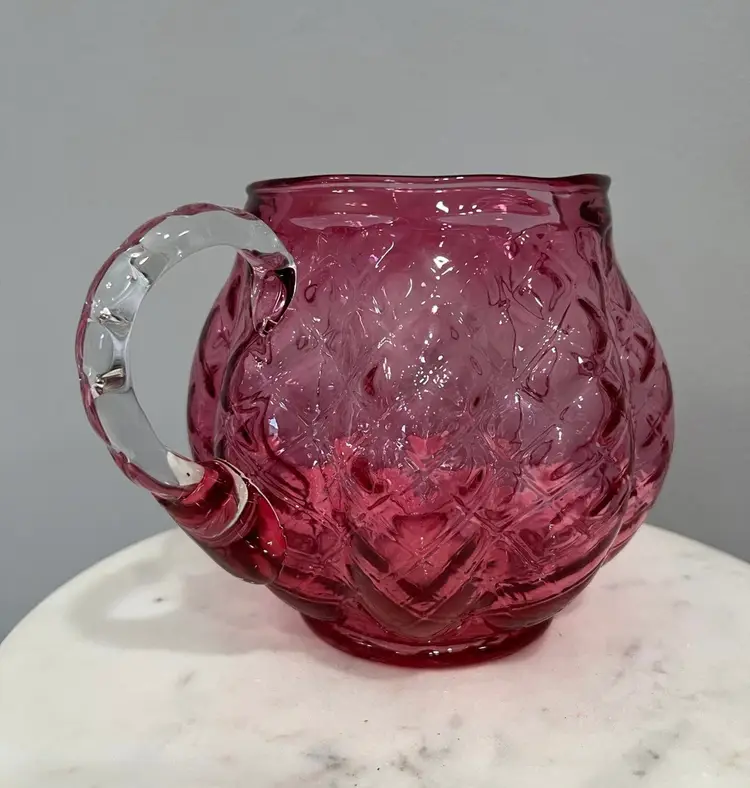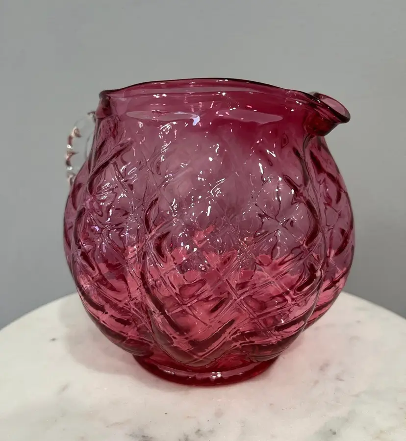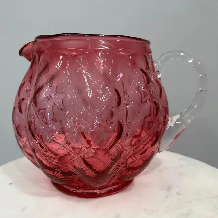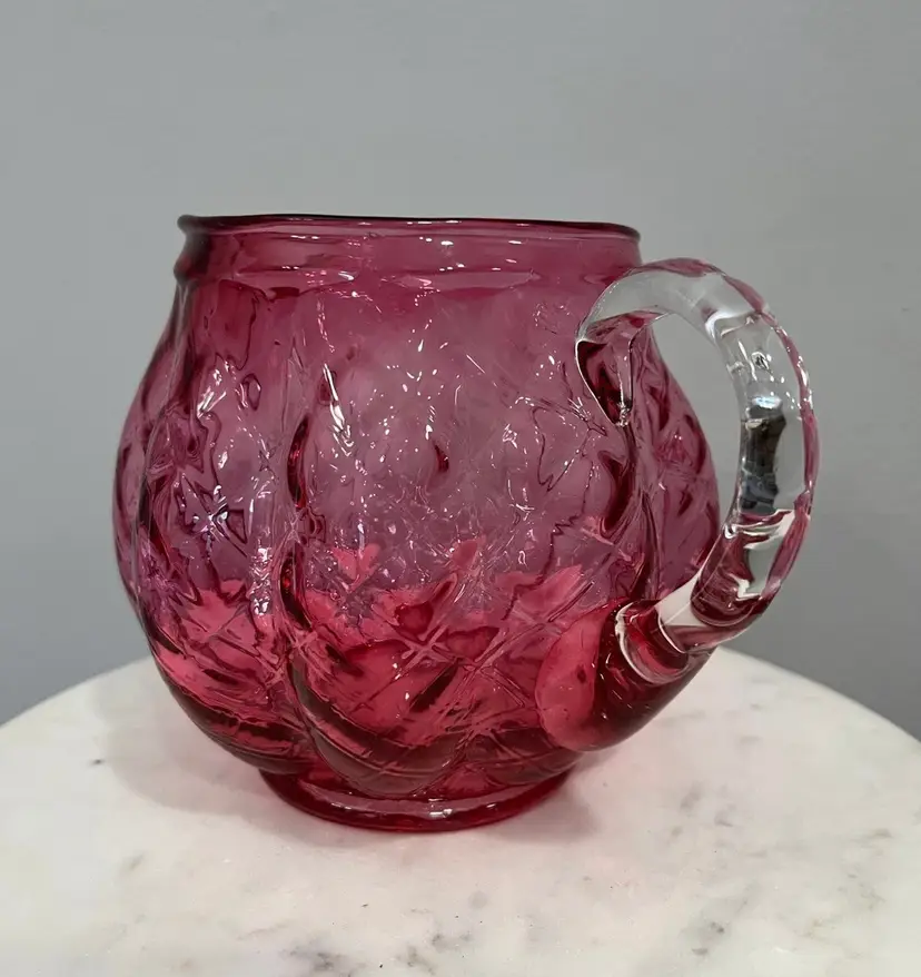 Good preowned condition with no chips or cracks. Unmarked Fenton so this would have been produced before 1970. Measures approximately 5” tall and 5.5” wide not including the handle. Message me with any questions.