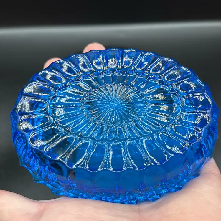 VTG Fenton Colonial Blue Thumbprint Trinket/Soap Dish 4” No Noted Flaws