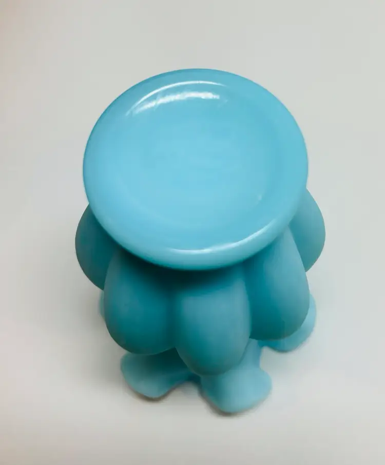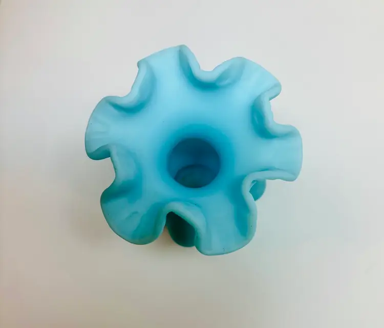 VTG Fenton Satin Blue Melon Vase W/ Ruffled Top Pre-1971 Great condition Fenton On Bottom 5.75” x 3.5”