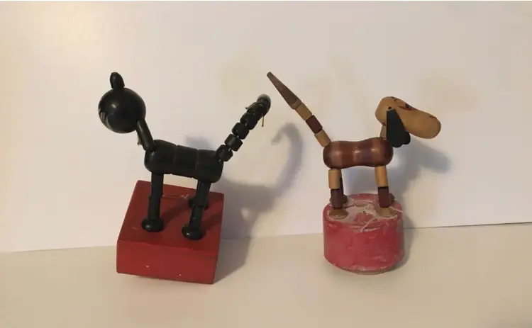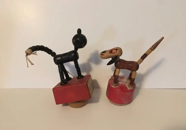The dog is from Kohner. Called Barking Dog, but it just collapses into different positions. Complete & working. Overall wear.