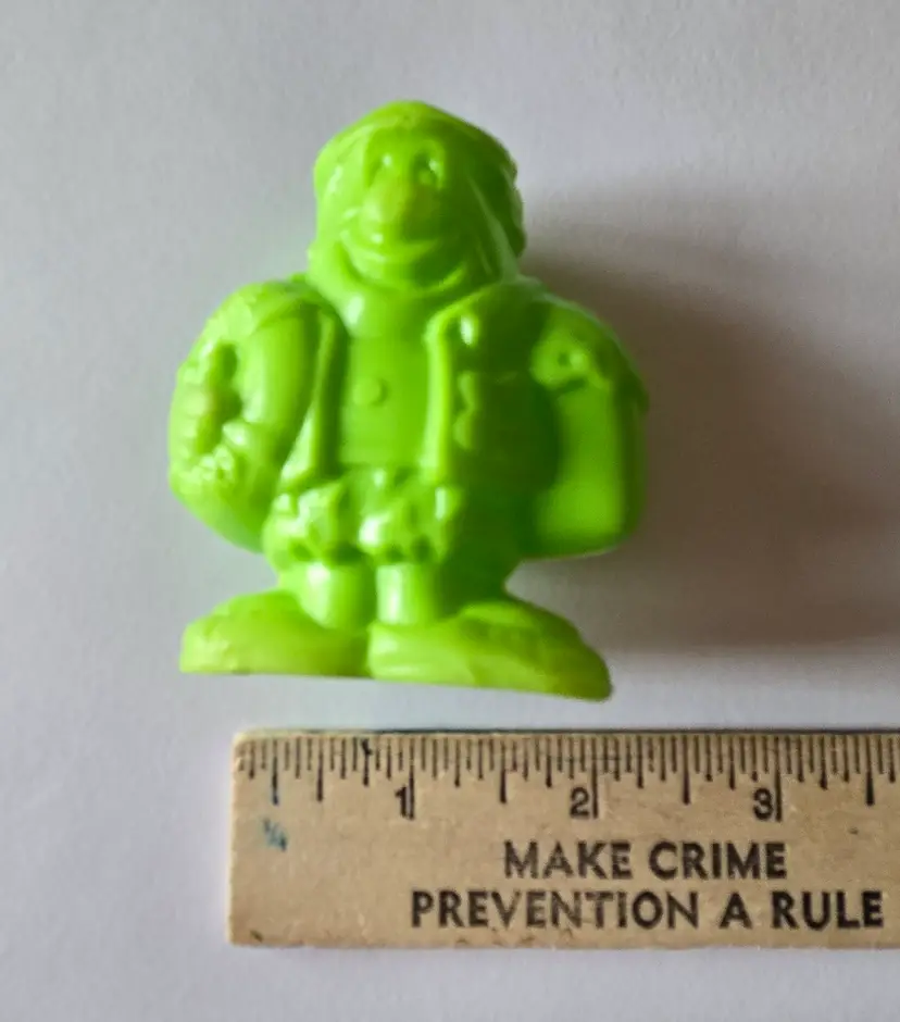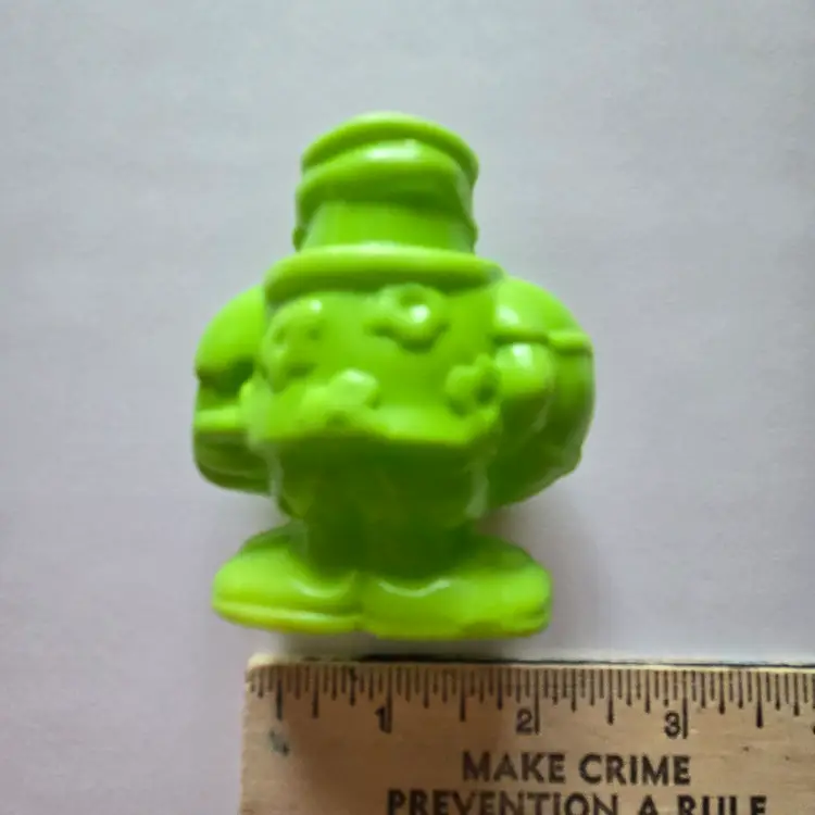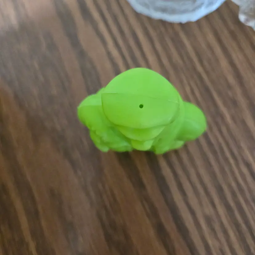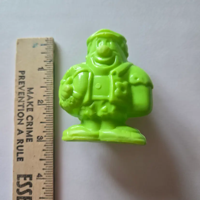 The Fred Flintstone Green Toy was stored away since my daughter (now 40) was young. It is intact with no cracks. I think it may be a bath squirter toy since it is squeezable plastic and has the hole in the top. It was never used in the bath, though.