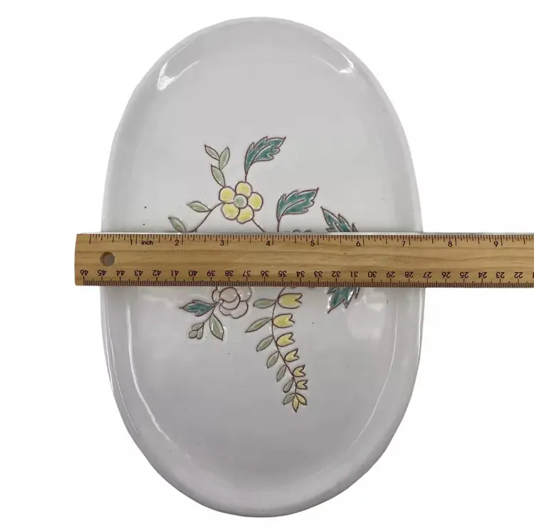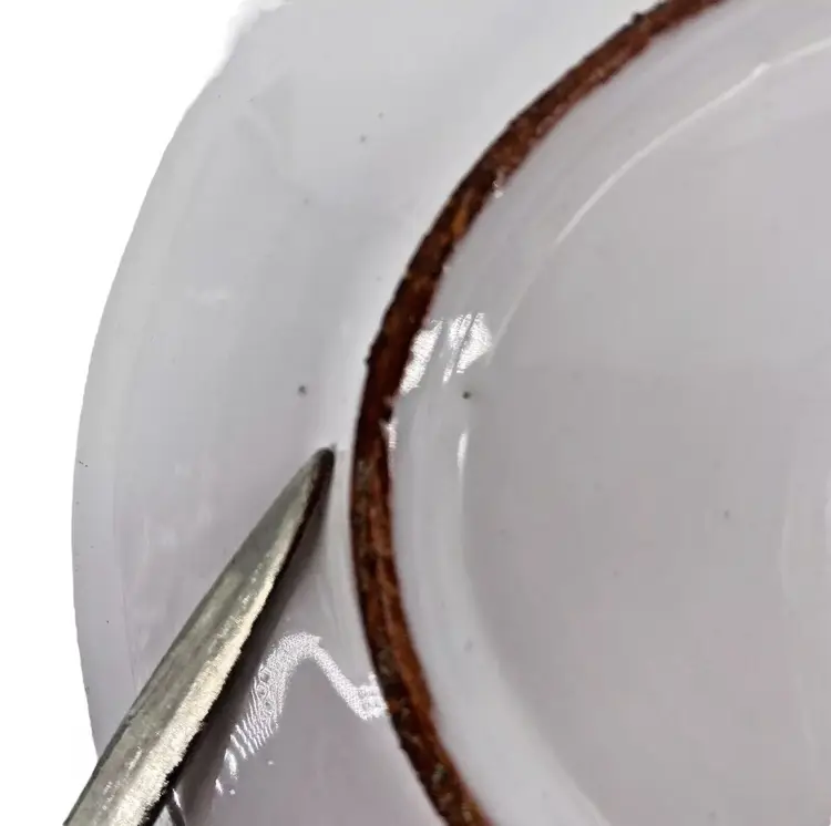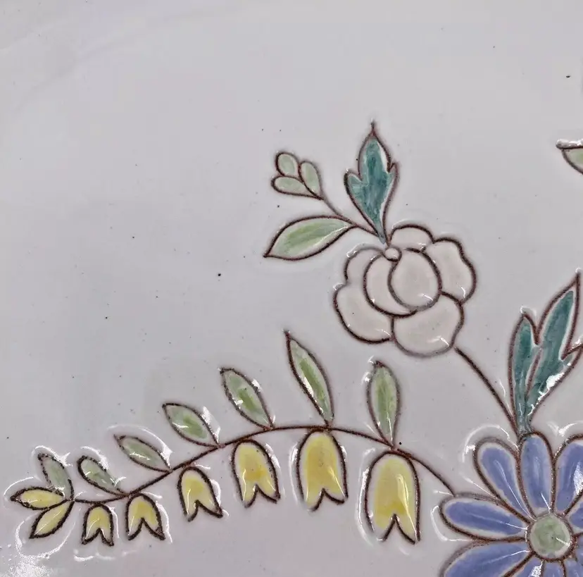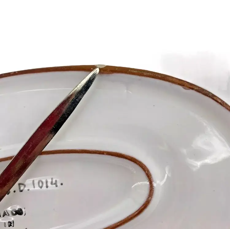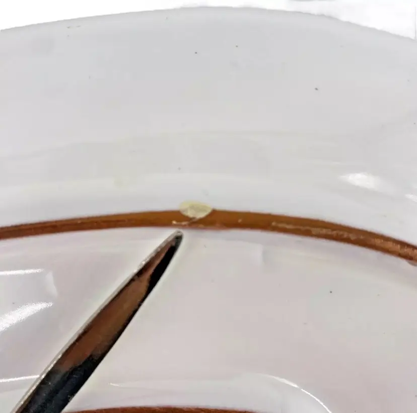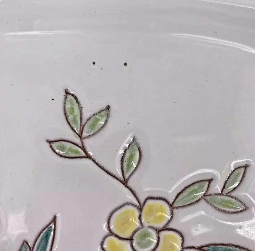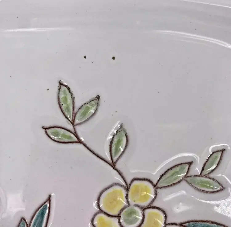 The plate has some manufacturers flaws on the top and flea bites on the base. Please review pictures.