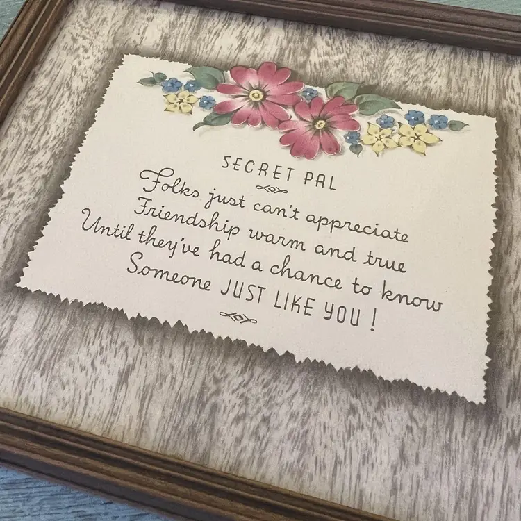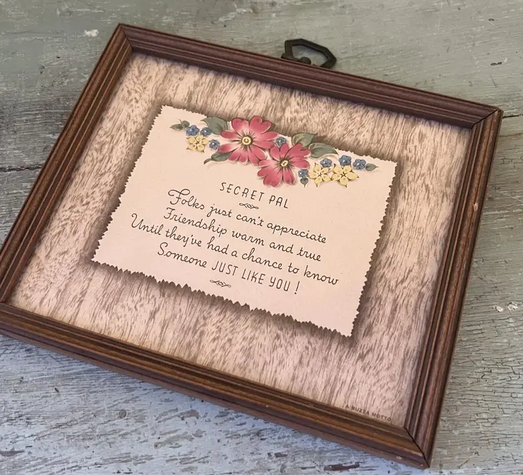 Vtg Framed Poem "Secret Pal" Friend Edgar A Guest Buzza Art Deco Pink Flowers