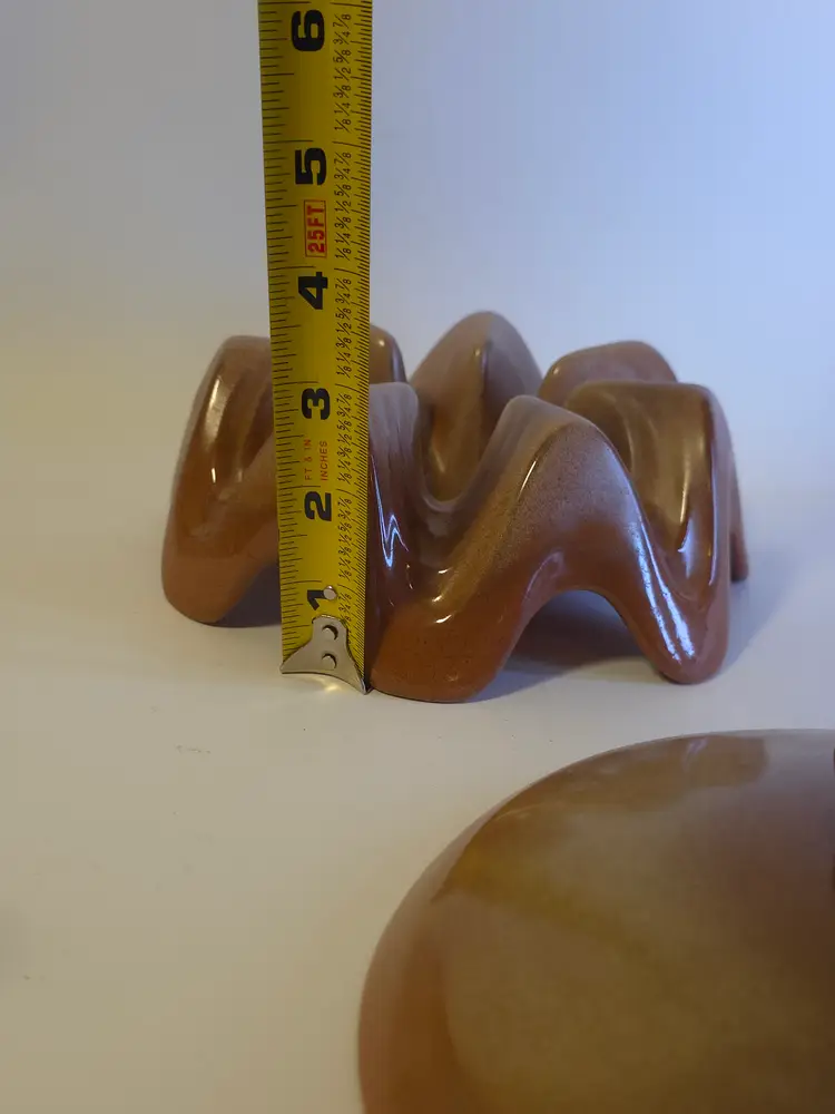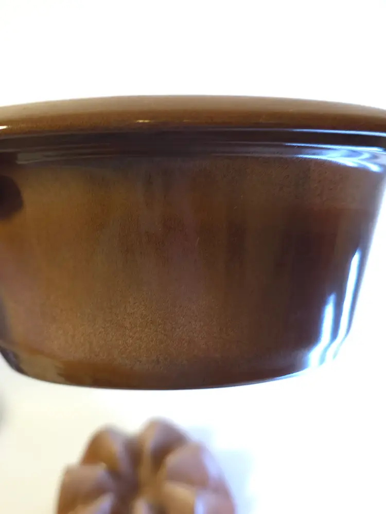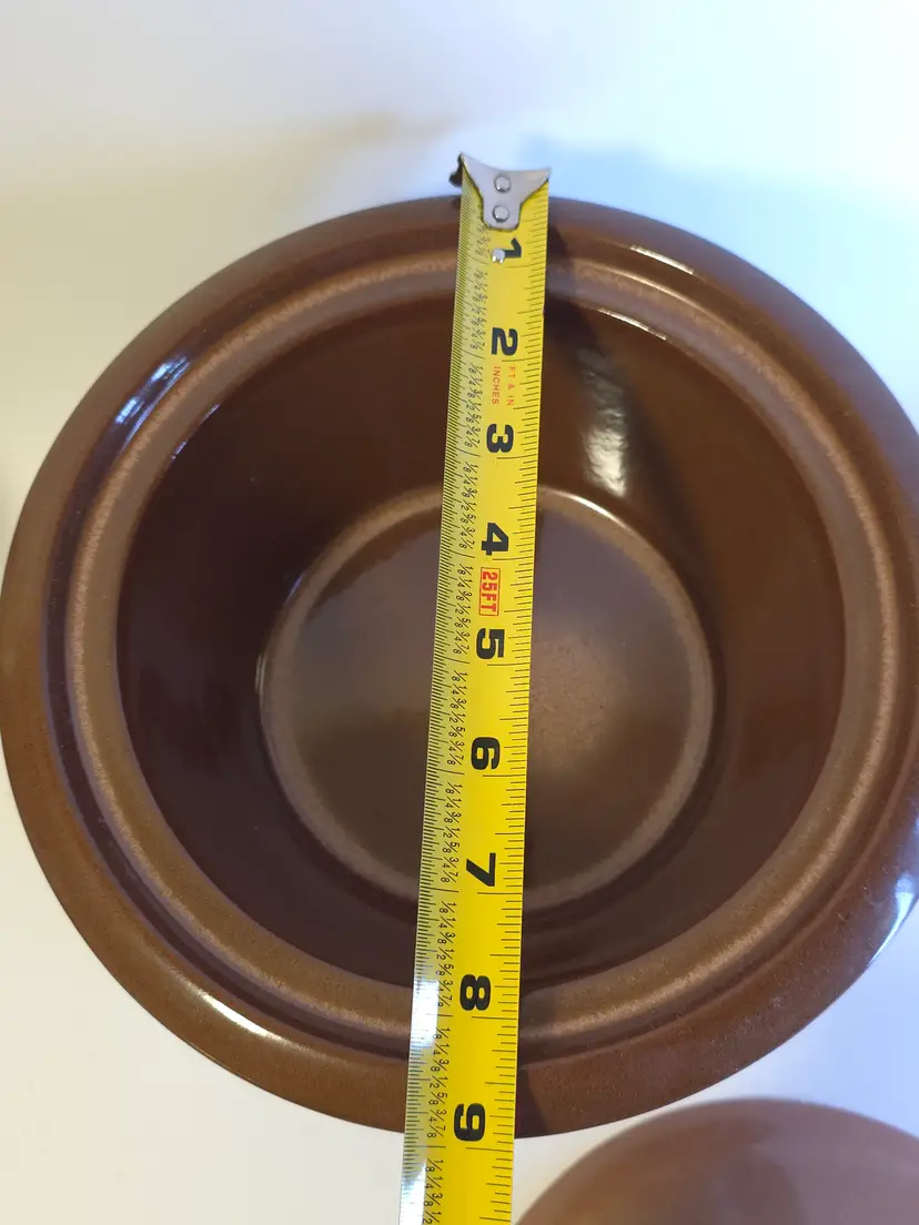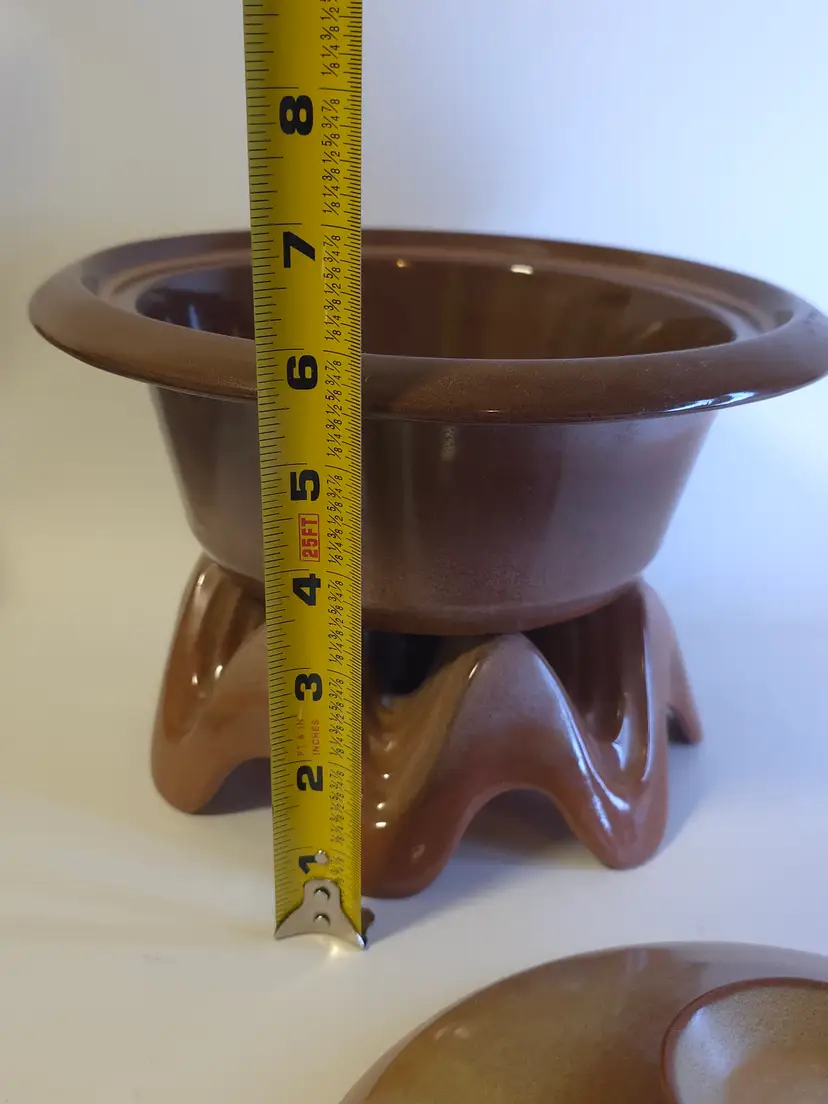The Vtg Frankoma Bean Pot Casserole Dish is a stylish and functional piece of dinnerware made in the United States. With a rustic Plainsman Brown finish, this dish includes a matching lid and a warming stand, making it perfect for serving and keeping meals warm. The Frankoma brand, known for its quality craftsmanship, is a collectible item that adds a touch of charm to any kitchen or dining area.