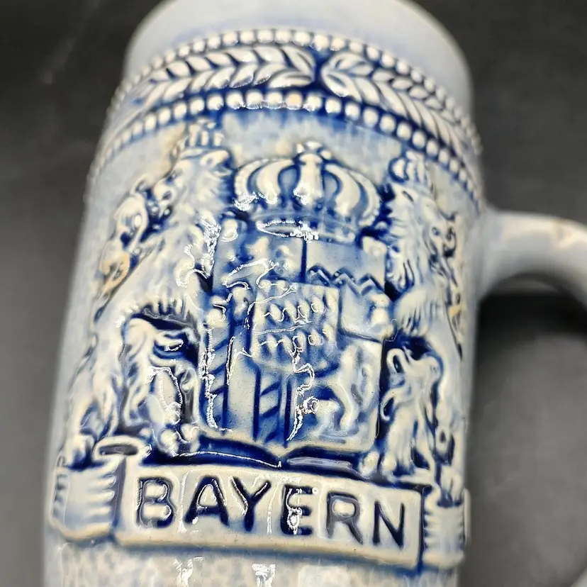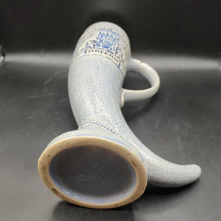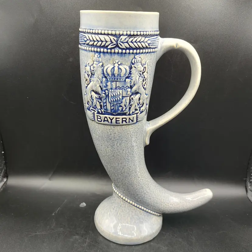 Vintage German Bayern Cornucopia Ceramic Beer Stein in good condition. Height 10.5" x width 3" x length 5.5" holds 16oz