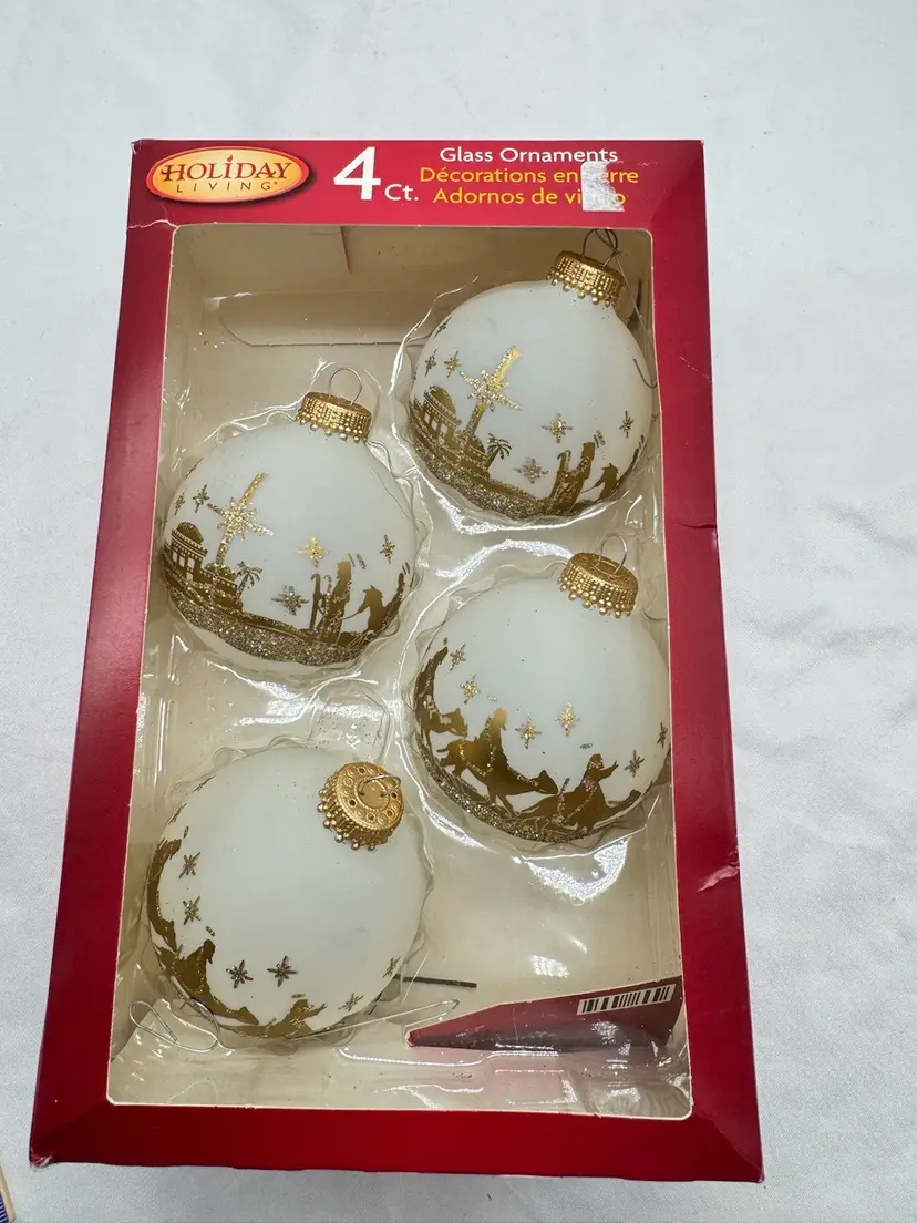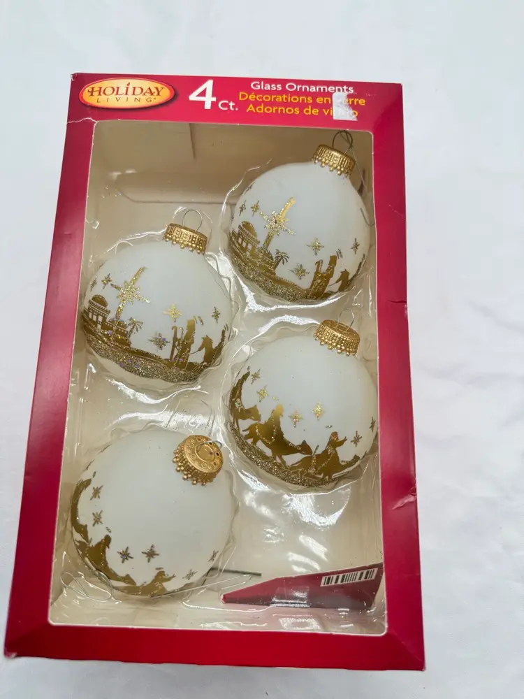 Vintage Glass Nativity scene Christmas ornaments. These are in excellent condition. Set of four.