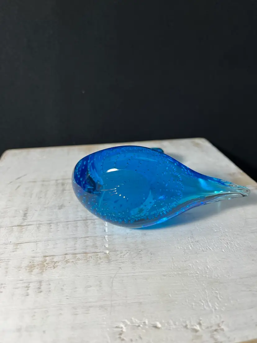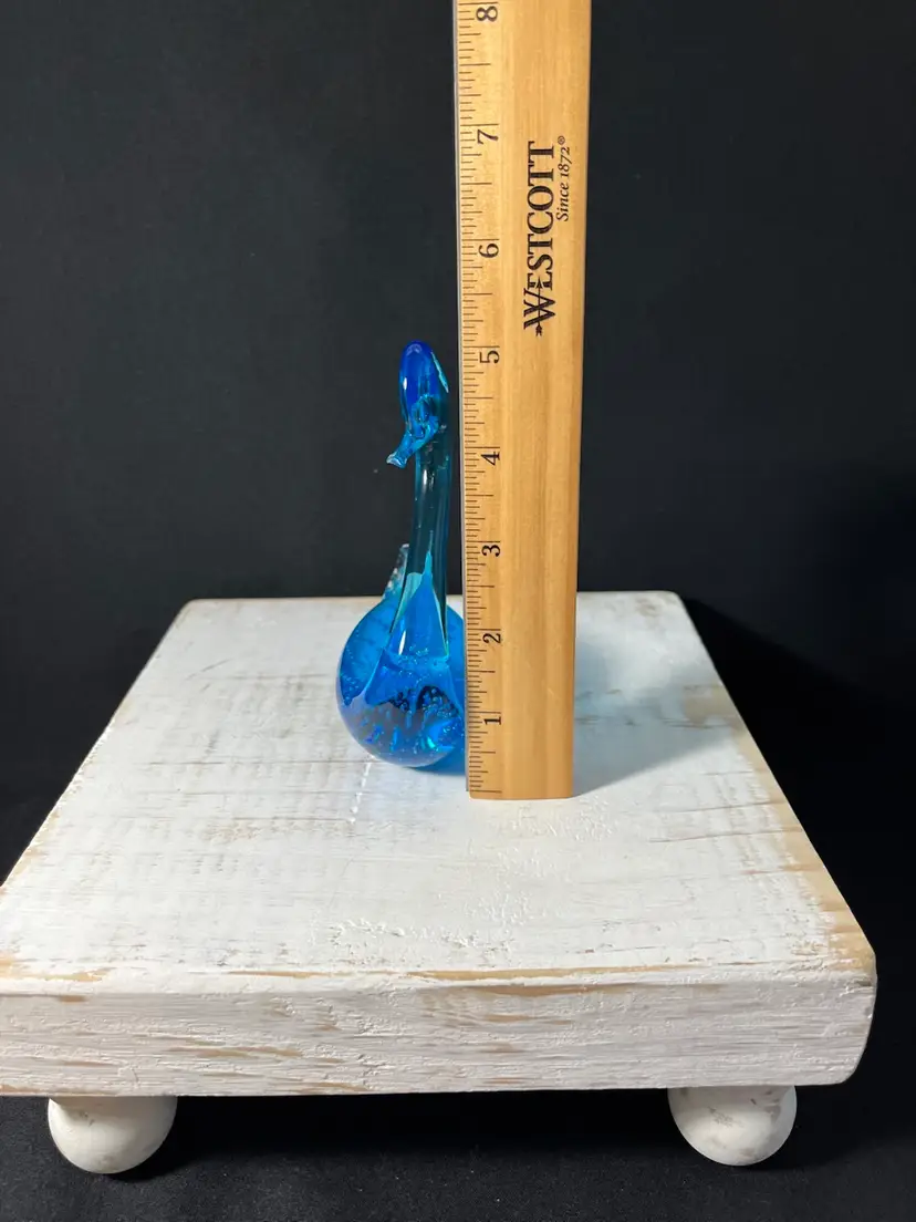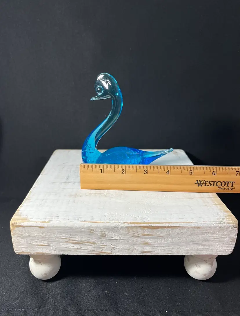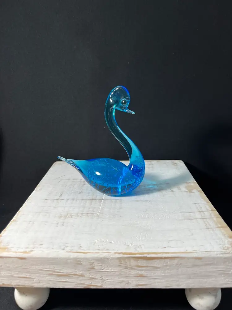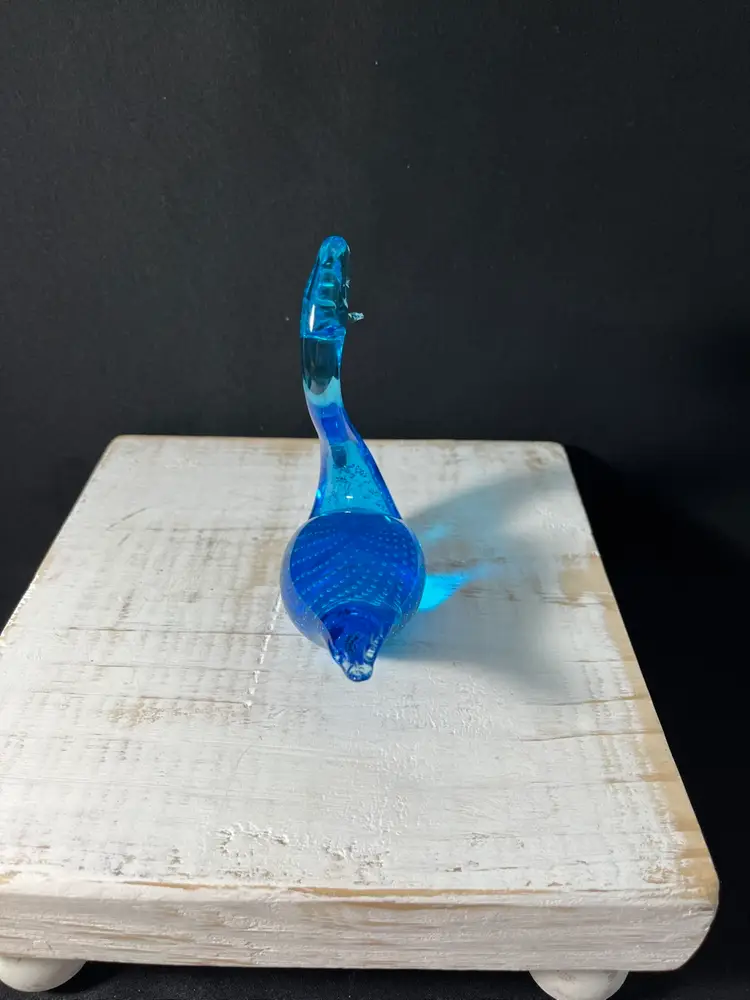 #1206 Elegant Blue Glass long neck Swan with controlled bubbles. Measures 5.25” x 4.5”. Unknown origin. No chips, cracks or scratches.