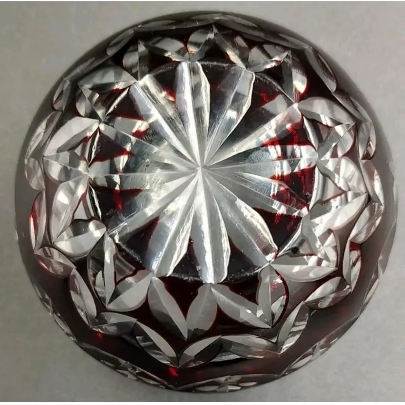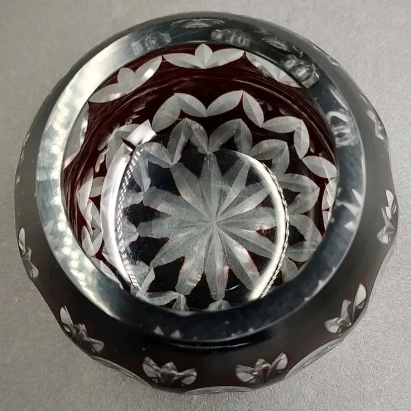Vintage 1950's Godinger Dynasty Ruby Red Cut to Clear Glass Votive Candle Holder. Height 2.5" x diameter 3". Made in Hungry. Retired Pattern.