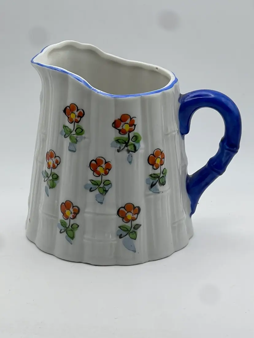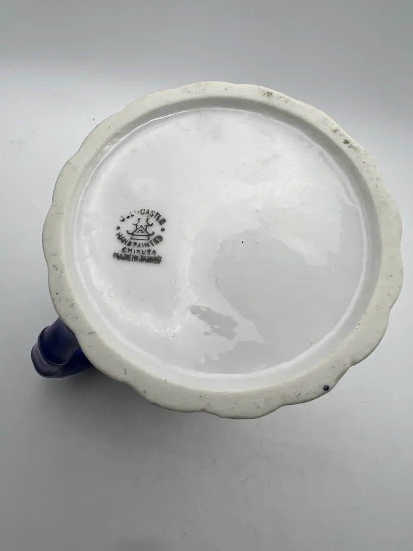 Beautiful 4” tall, 3.5” in diameter hand pitcher with orange and yellow flowers and royal blue trim. Is stamped “GOLD CASTLE HAND PAINTED CHIKUSA MADE IN JAPAN” on the bottom. Has no chips or cracks If you have any questions, please ask! Thank you for looking! GIFT WITH EVERY PURCHASE!🎁