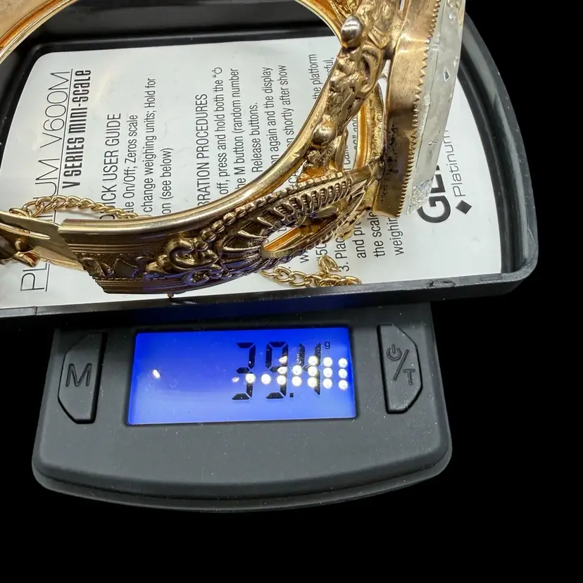 Condition - As Is - General Overall Wear, and some scratches/discoloration/wear to metal. The safety chain is in need of a minor repair. Jewelry is uncleaned unless noted.