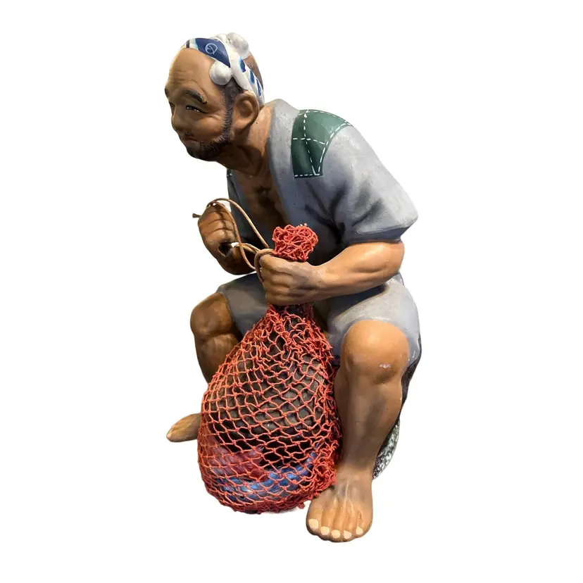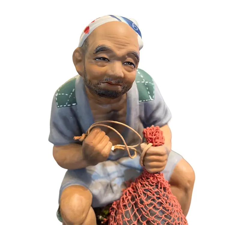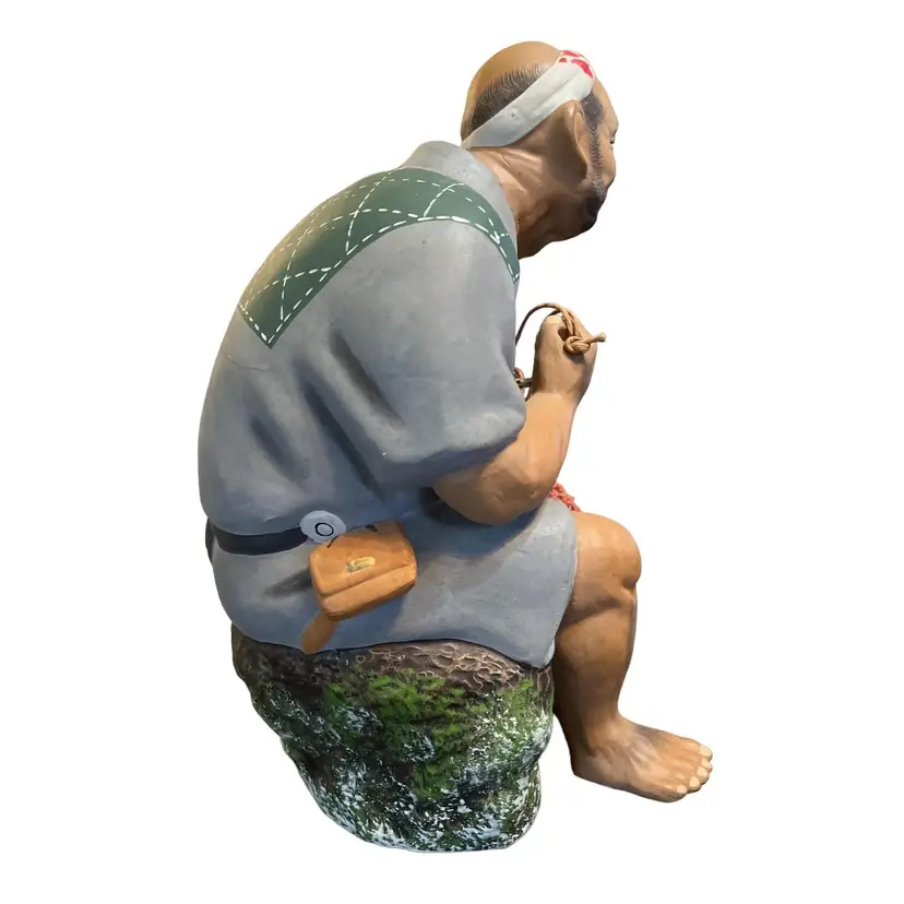 This Hakata Urasaki fisherman doll is a vintage Japanese collectable that showcases the intricate craftsmanship of Japanese culture. Made of high-quality clay, this colorful doll stands as a testament to the rich history and traditions of Japanese art.