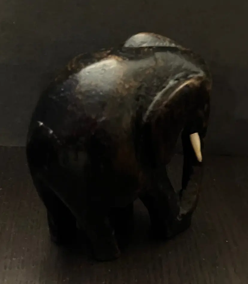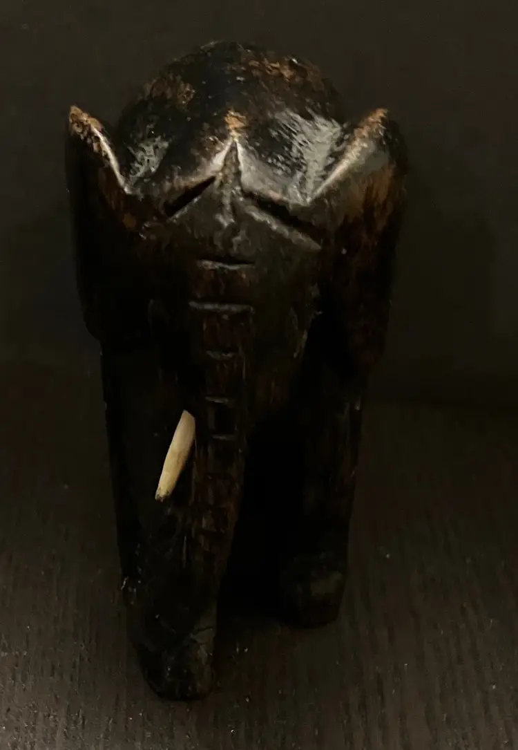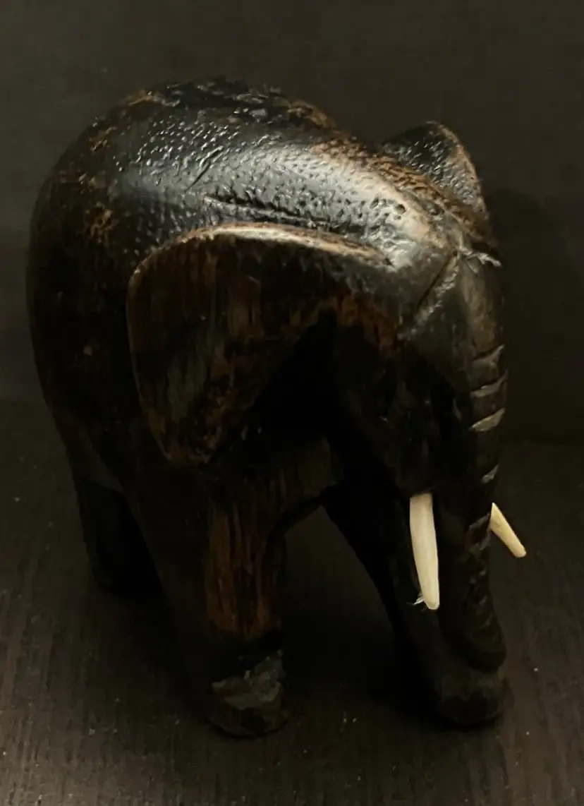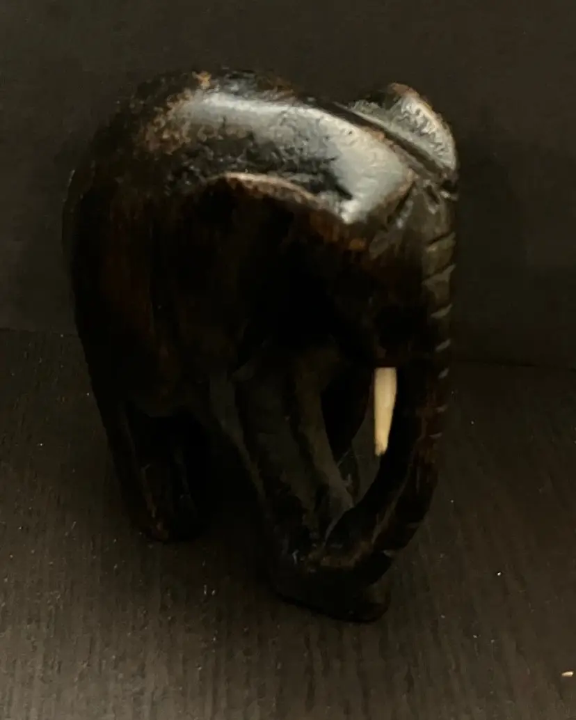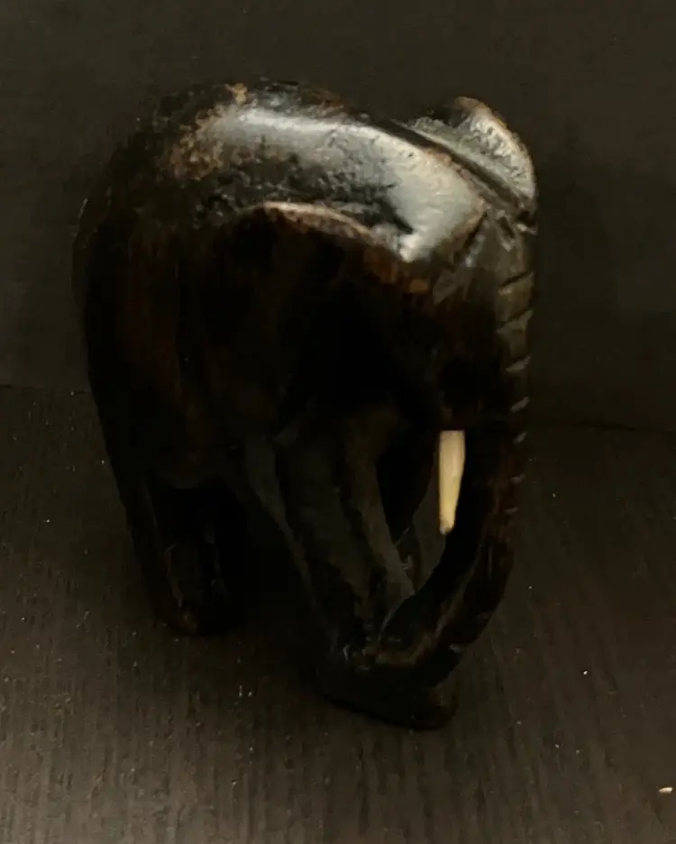 Tusks are some type of white material - I don't know what it is. One of the elephants is missing 1 tusk. The other three can be removed. Each elephant is approximately 3" by 3" by 3".
