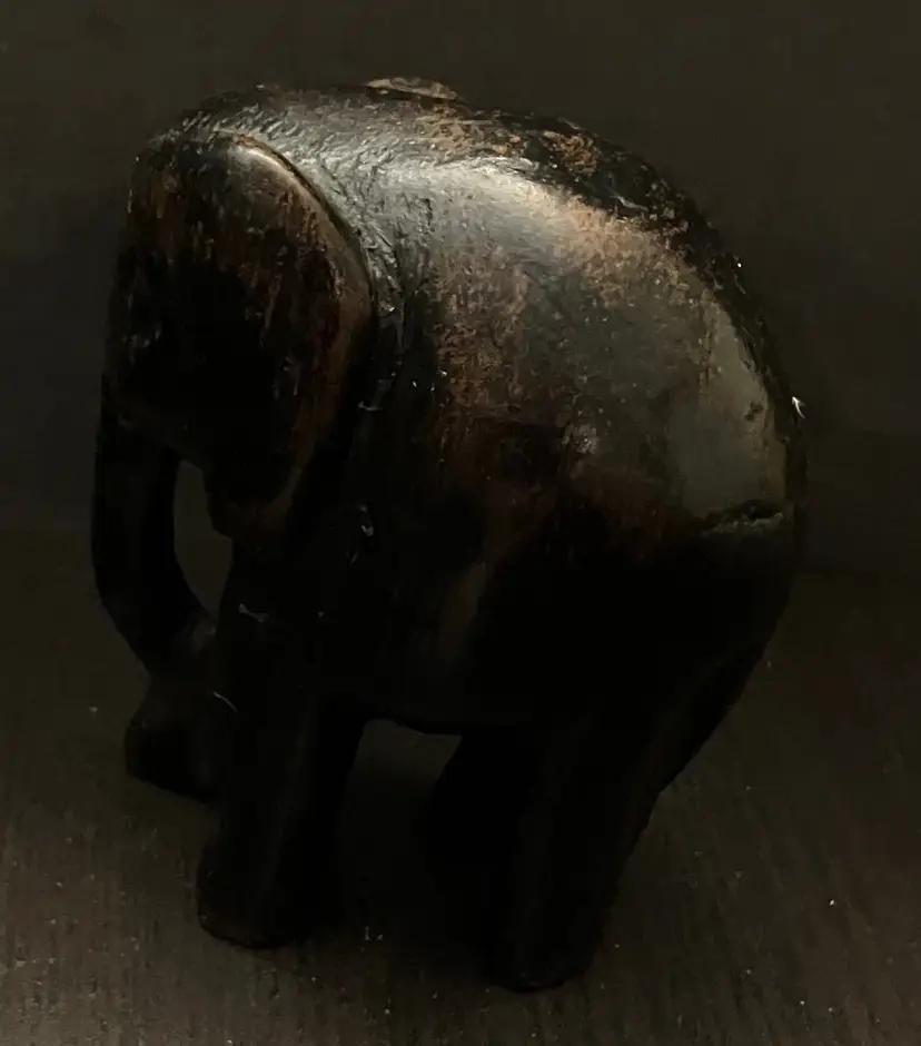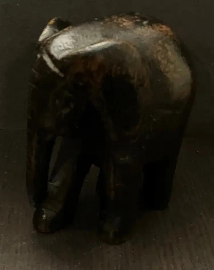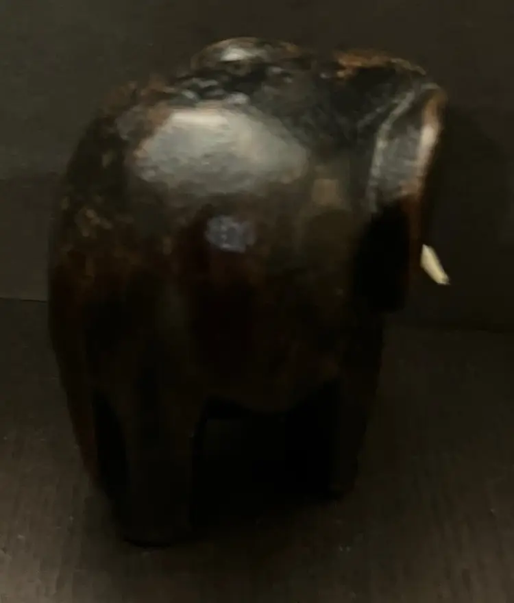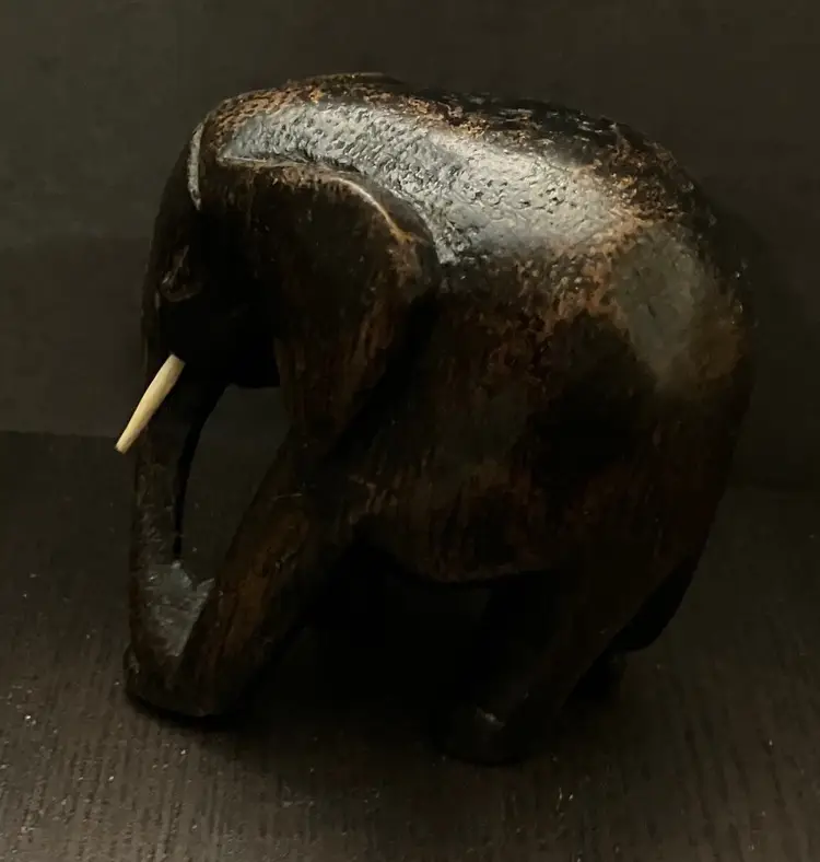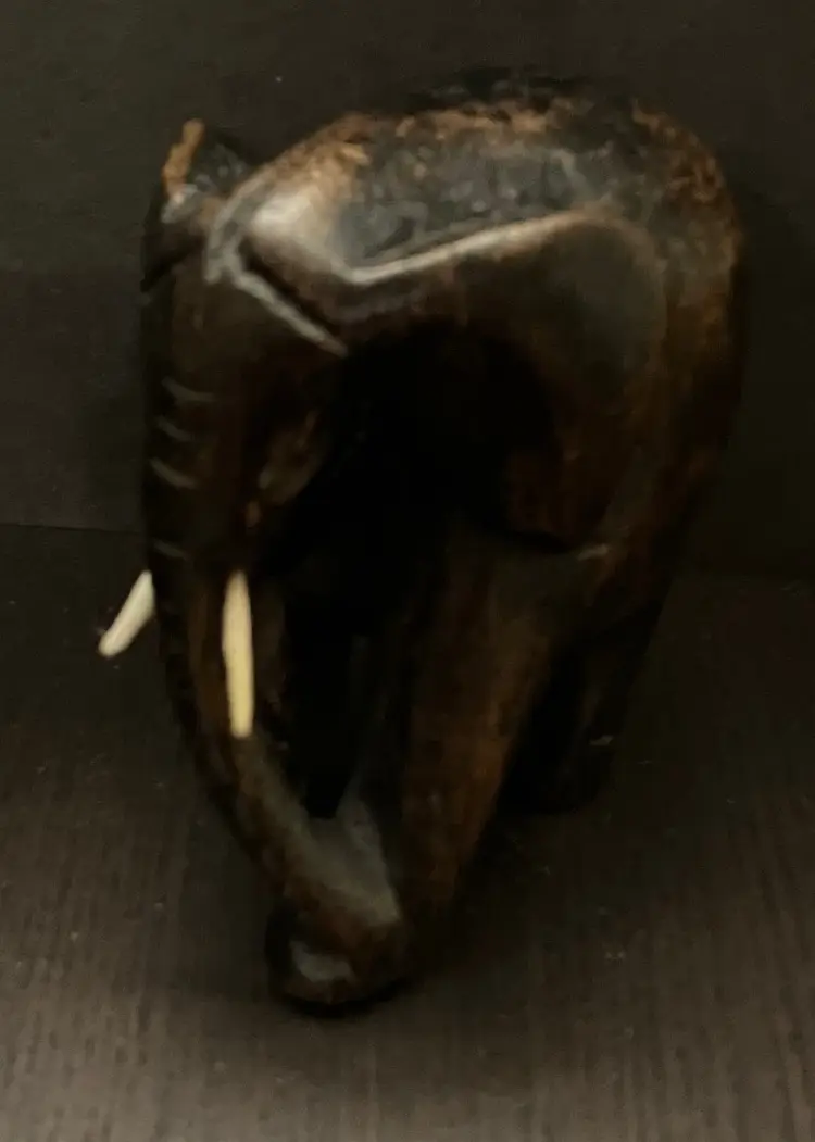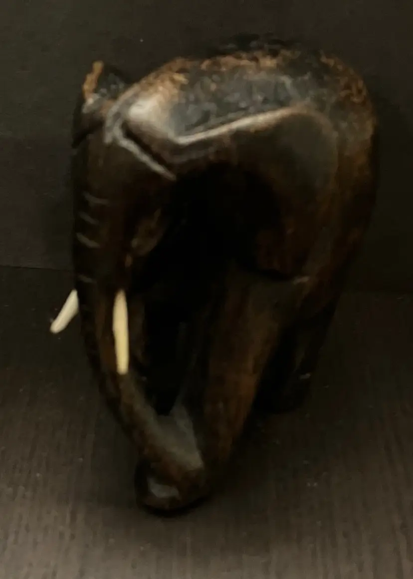 Tusks are some type of white material - I don't know what it is. One of the elephants is missing 1 tusk. The other three can be removed. Each elephant is approximately 3" by 3" by 3".