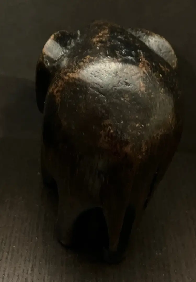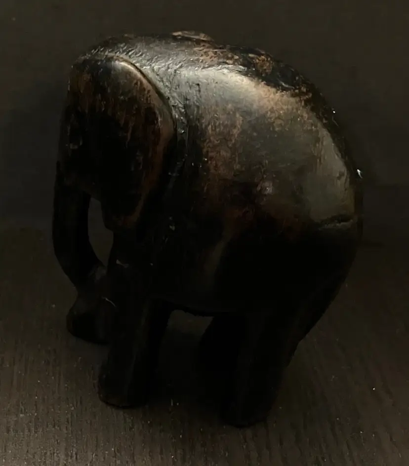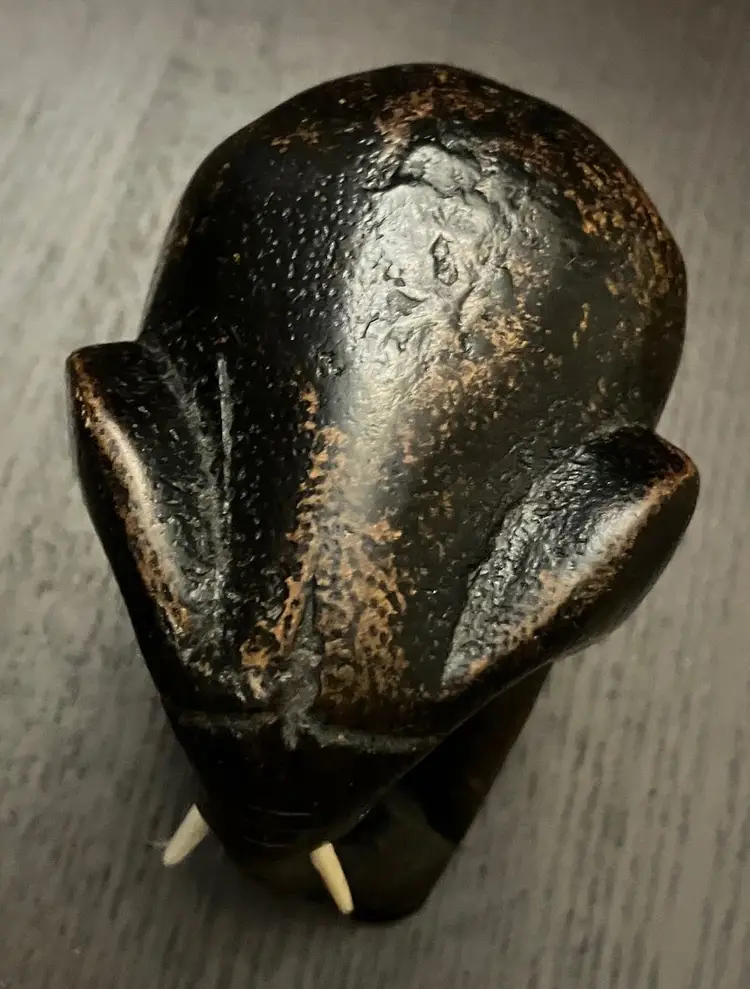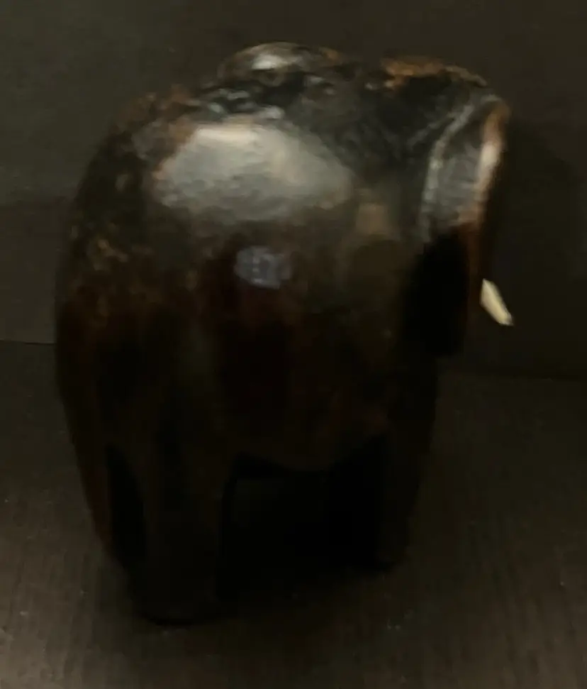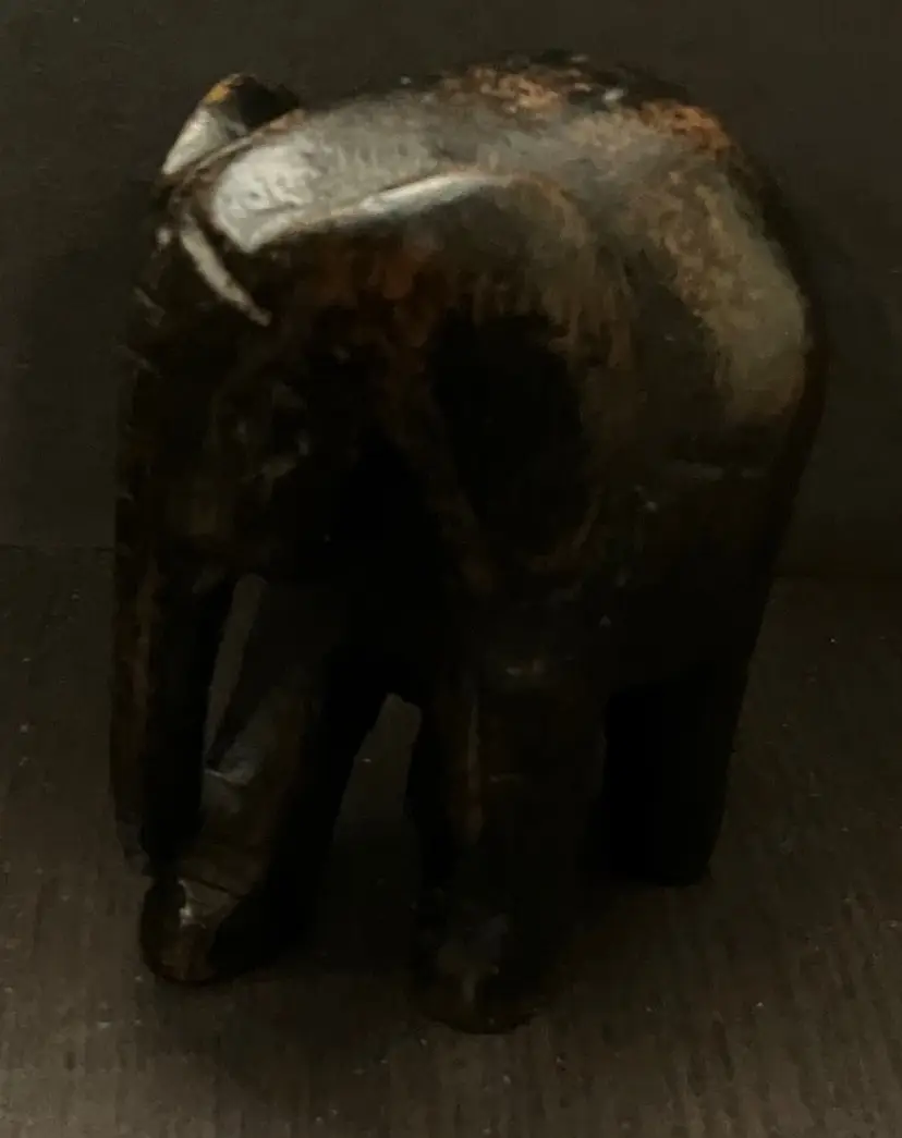 Tusks are some type of white material - I don't know what it is. One of the elephants is missing 1 tusk. The other three can be removed. Each elephant is approximately 3" by 3" by 3".