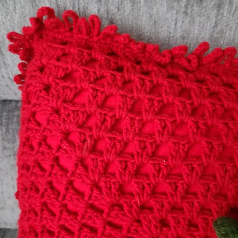 *** Crocheted cover is a deeper red rather than the bright red it comes across as in photos ***