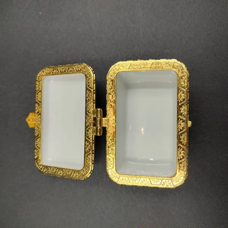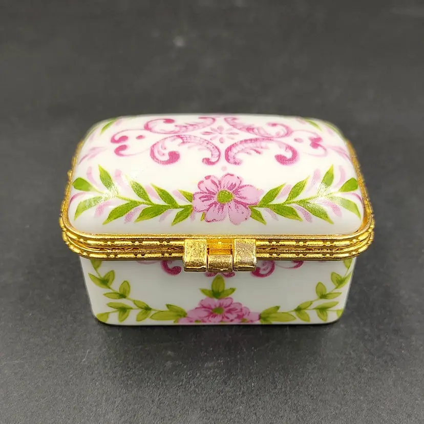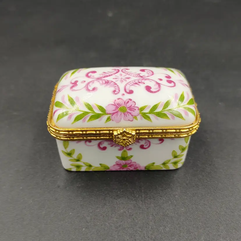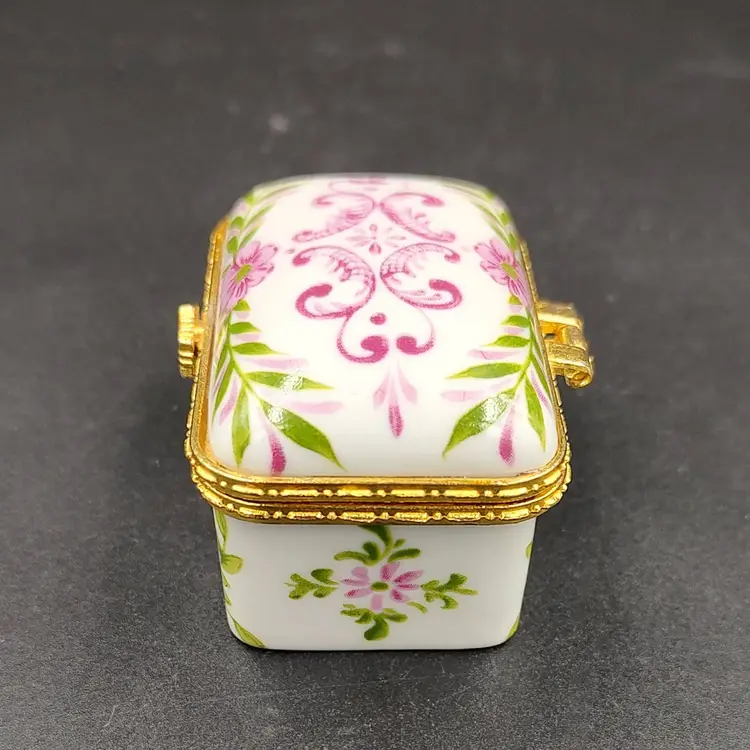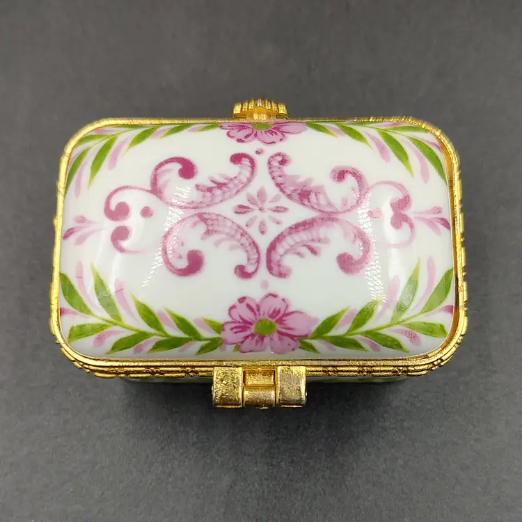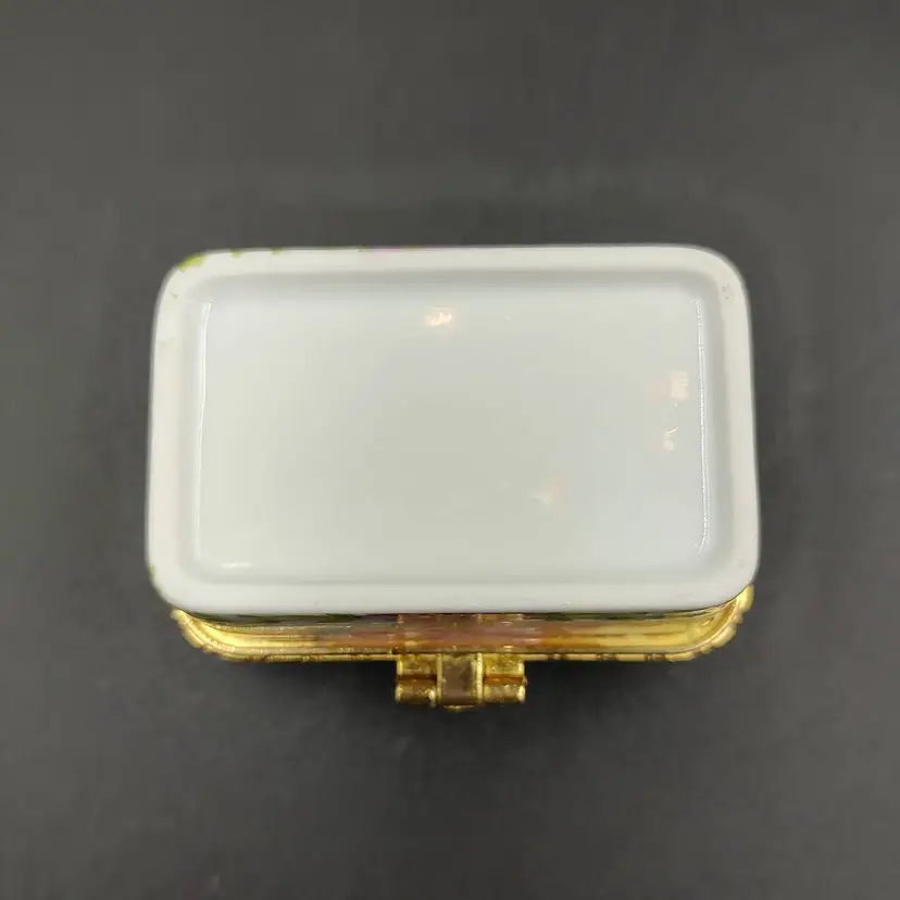 Vintage Hand Painted Porcelain Trinket Dish/Pill Box. Height 1.6/16" x width 1.5" x length 2.5"
