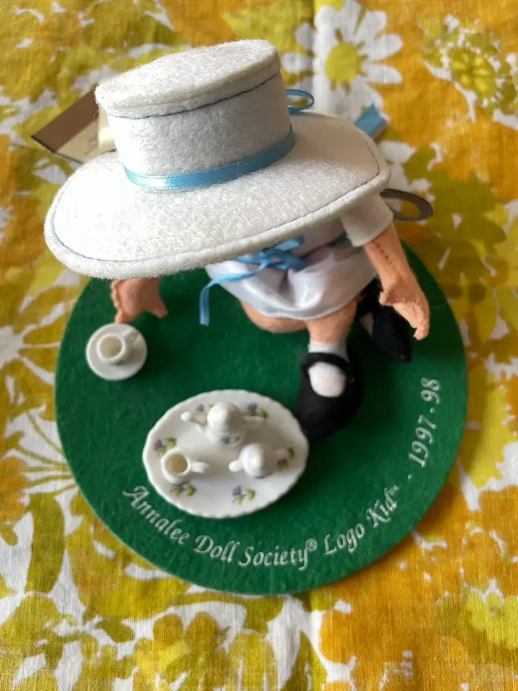 She has original tags. I believe there is a tea cup missing from her hand after looking at other photos. Other than that good condition !