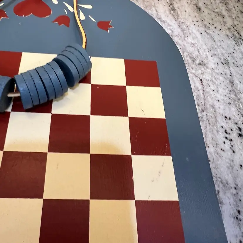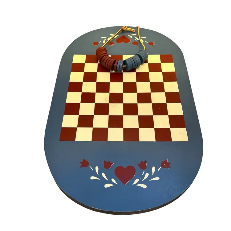 Perfect for collectors of vintage and handmade items, this chess checkerboard is a must-have for anyone looking to add a touch of primitive beauty to their space. Its Americana Primitive folk art style makes it a great addition to any collection, and its handmade design ensures that no two pieces are exactly the same. Whether you're looking to add to your collection or simply want to bring a touch of rustic charm to your home, this vintage wooden chess checkerboard wall hanging is the perfect choice.