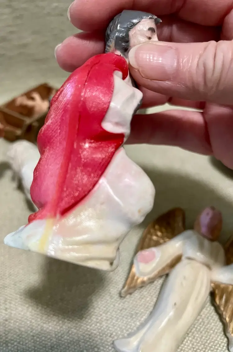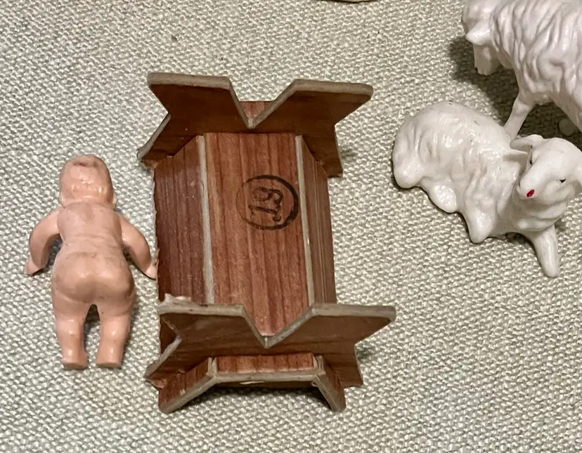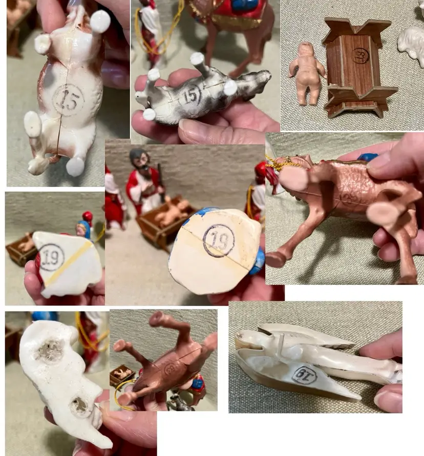Please look at all the photos prior to deciding to make a purchase. These are pre-owned with age to each piece so, review the photos please: small areas of yellowing to the white, dust, some areas of wear to the air-brushed painted areas and Jesus maybe not an original piece to this set. Buyer is strongly encouraged to review the photos and decide for themselves its condition as my interpretation may not align with yours. Prior to a purchase, questions not answered in photos, details, description are welcome.