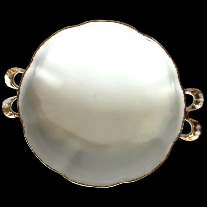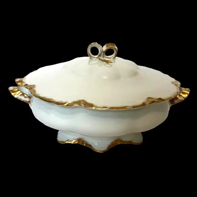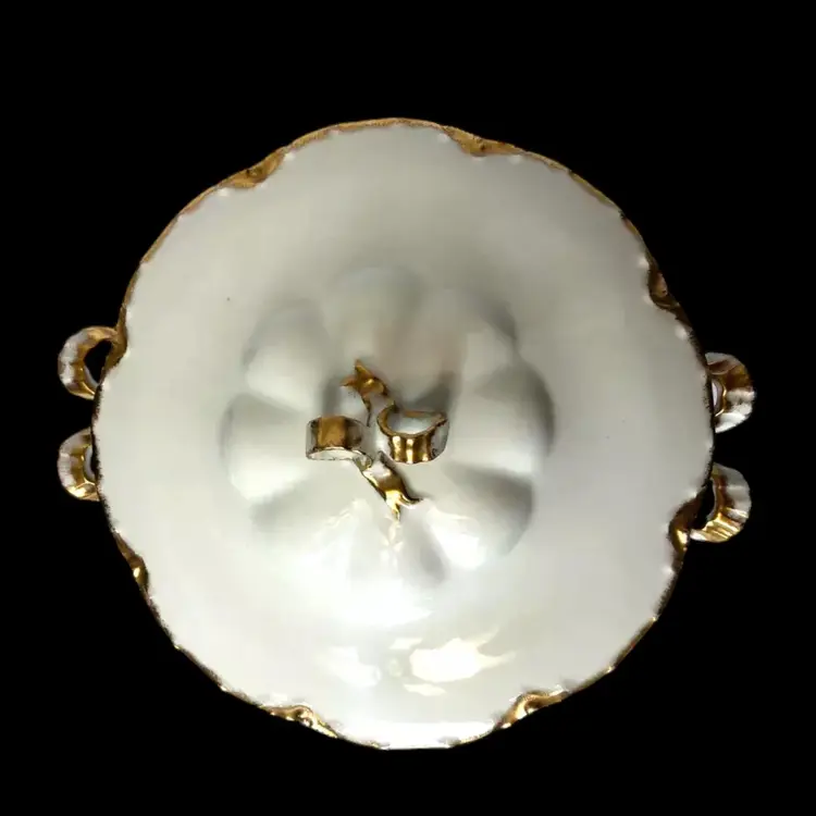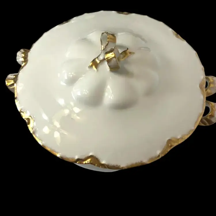 Vintage Haviland Porcelain Antique White Covered Dish with Gold Trim Scallop Edge
